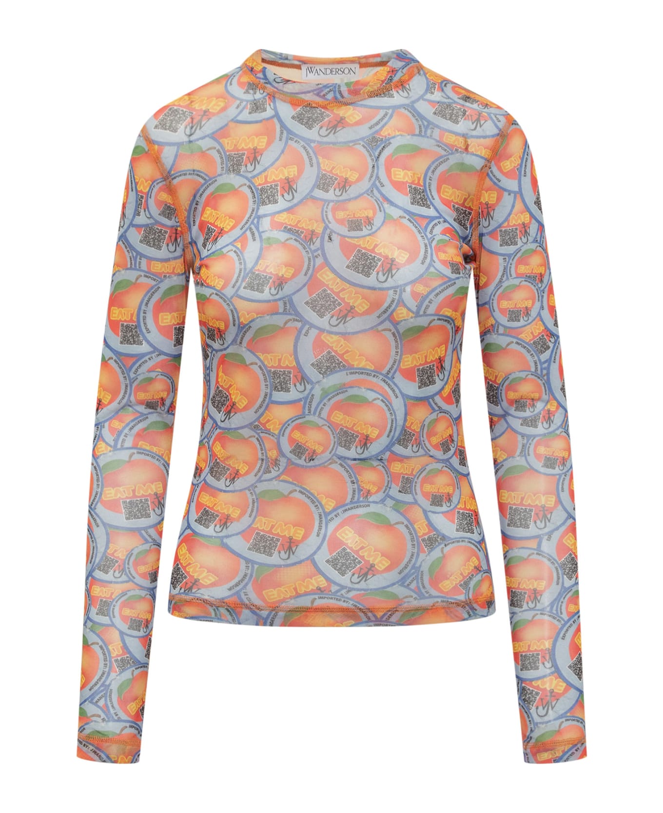 T-shirt with long sleeves. Crew neck. Semi-transparent workmanship. Patterned pattern with qr code and all-over logo.