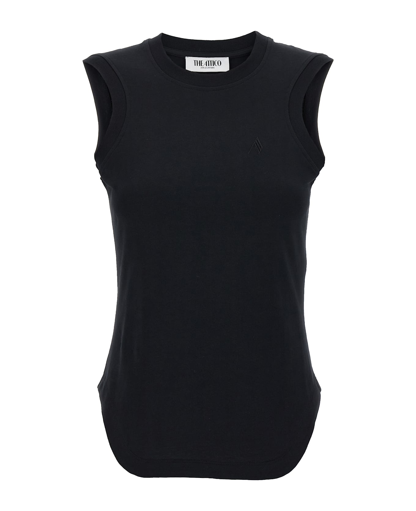 'Reese' cotton top with front logo appliqué, armholes, crew neck, shaped hem. Composition: 100% cotton