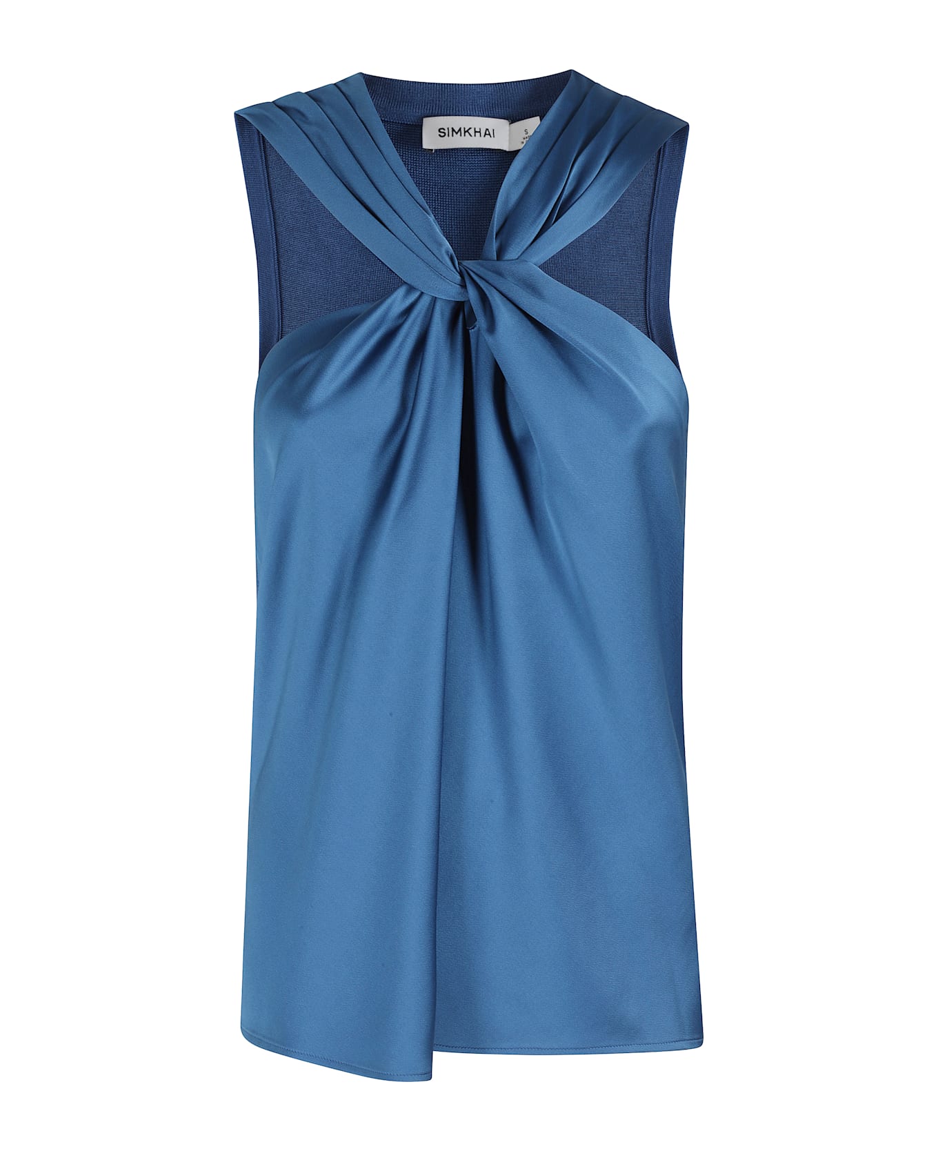 Ria Top - Simkhai - Blue color - Satin front fabric - Crisscross design neckline - Sleeveless - Knit back fabric - Regular fit
