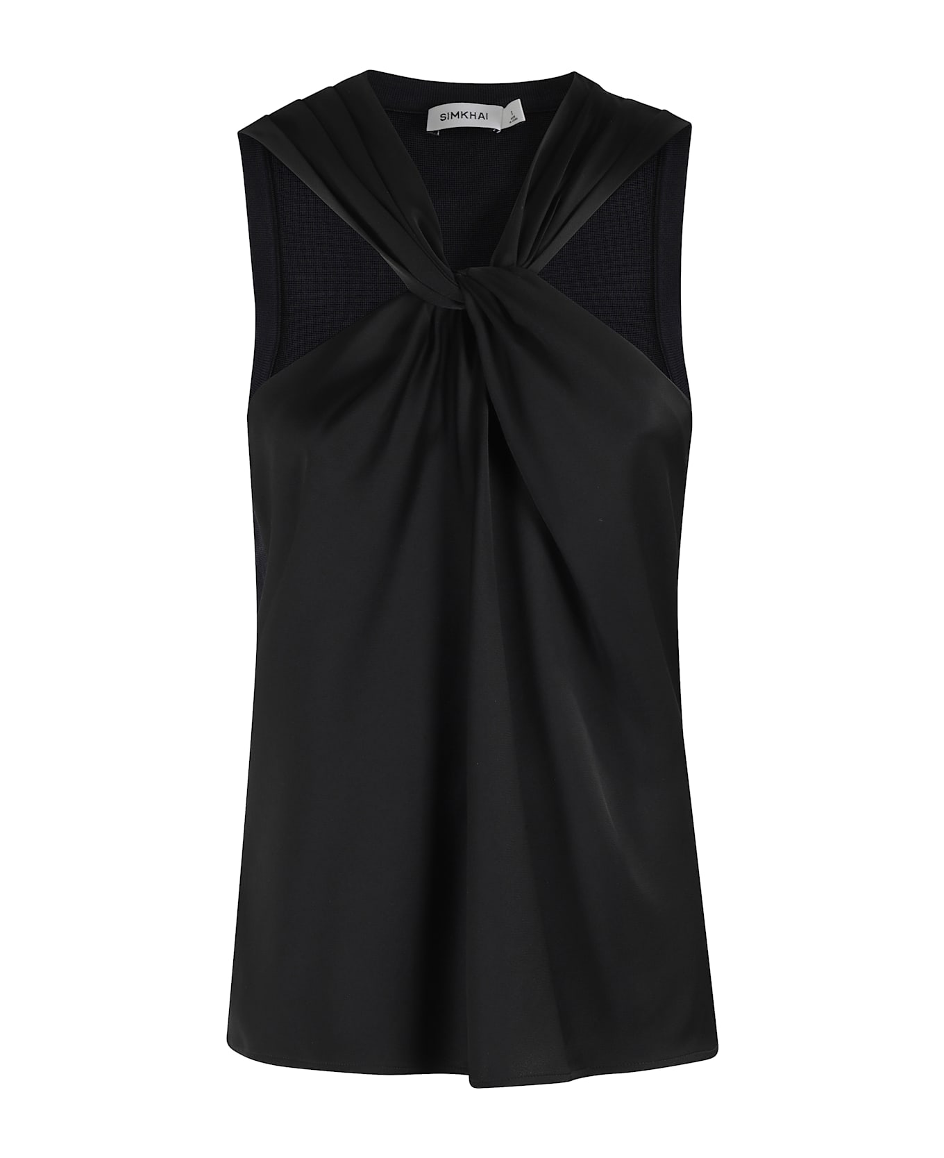 Ria Top - Simkhai - Black color - Satin front fabric - Crisscross design neckline - Sleeveless - Knit back fabric - Regular fit