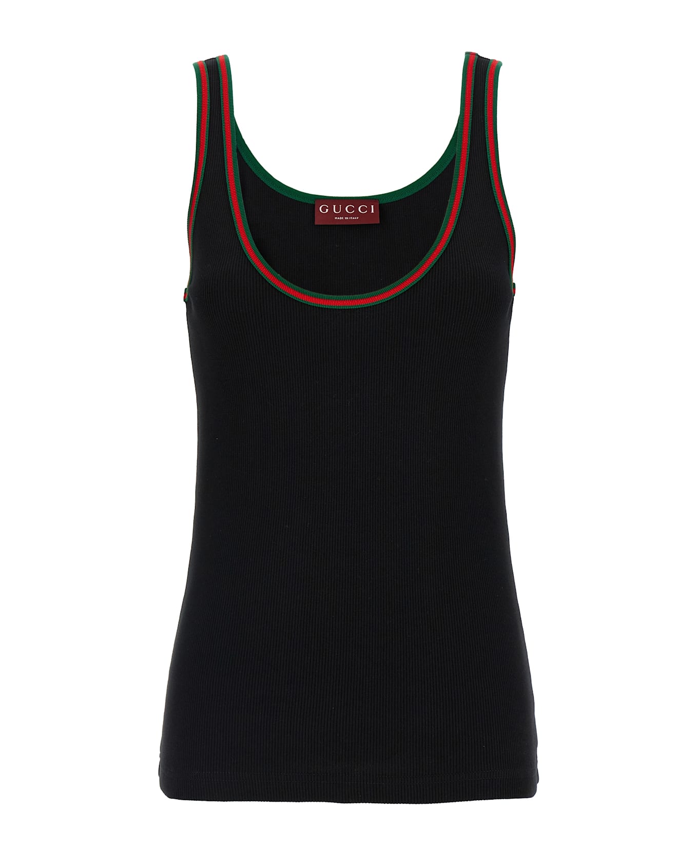 Ribbed cotton blend top with stretch and round neckline, 'web' piping detail Composition: 98% cotton 2% elastane