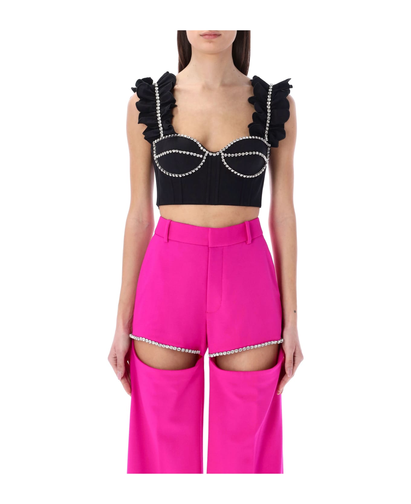 Cotton Ruffle Bustier Top By Area. Featuring: Sweatheart Neckline Frilled Straps Rear Zip Fastening Crystals Trims Cropped The Model Is 1,72 M Tall And She's Wearing Size 4