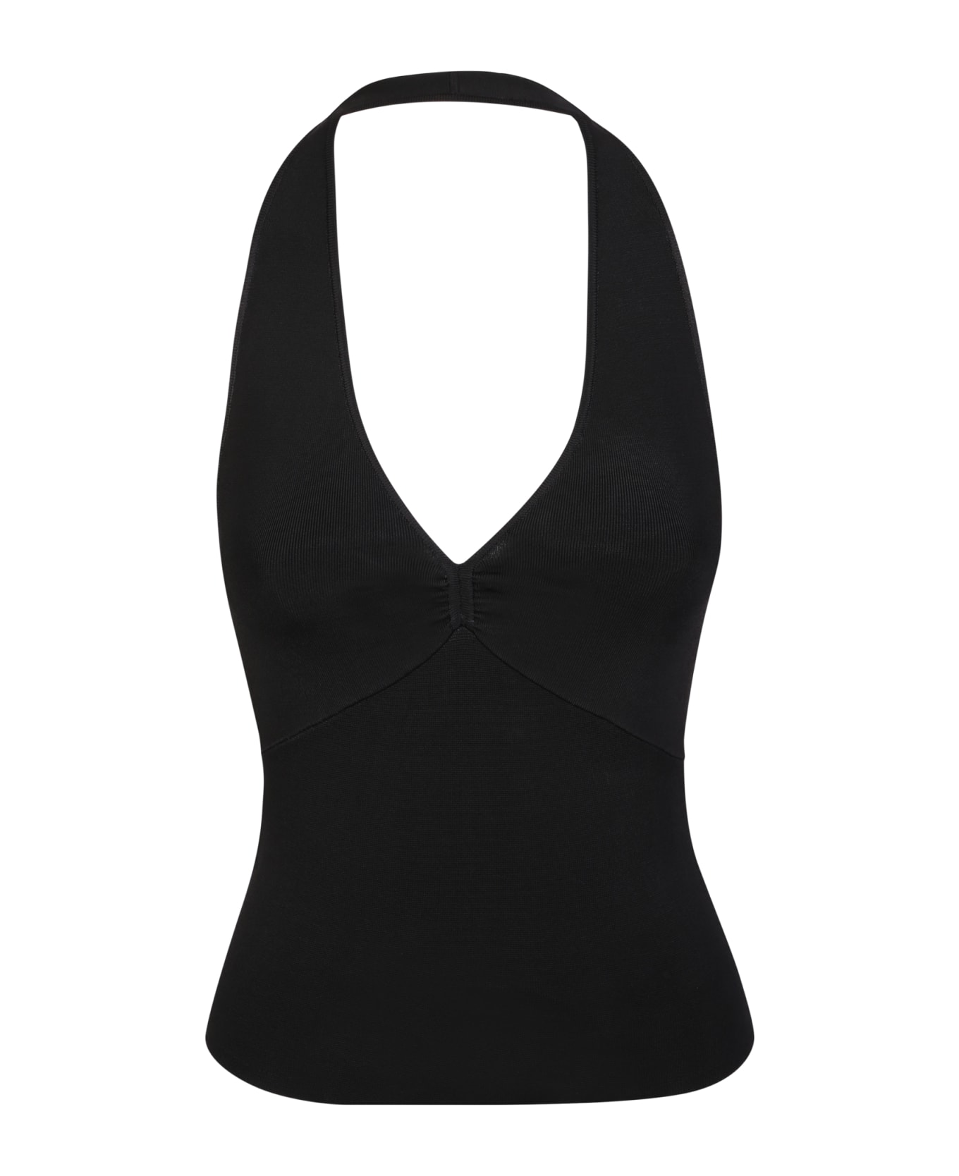 Halterneck. Sleeveless. Stretch design. Color: black