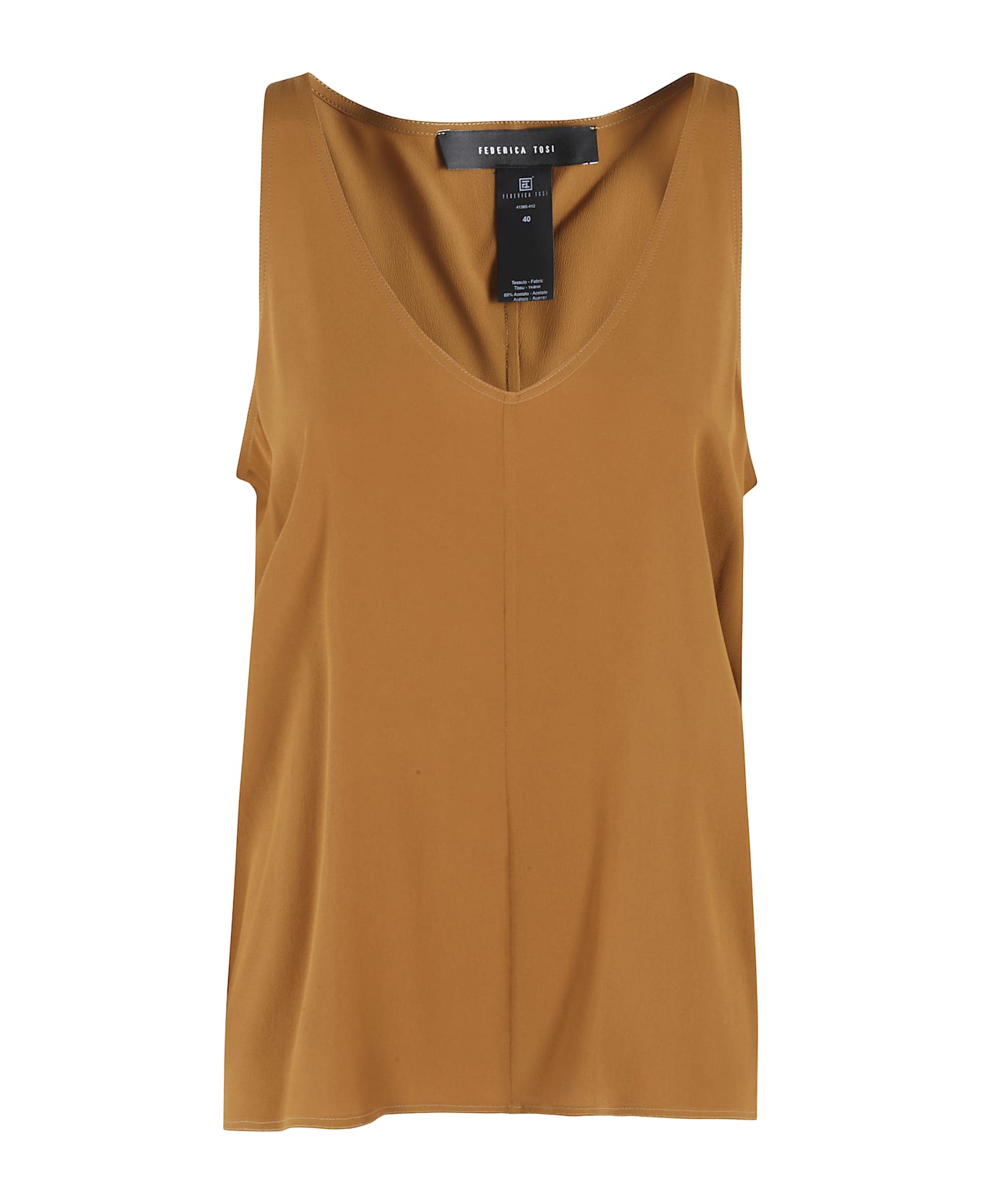 Tank top - Federica Tosi - Amber color - Crepe de chine fabric - Oval neckline - Sleeveless - Loose fit