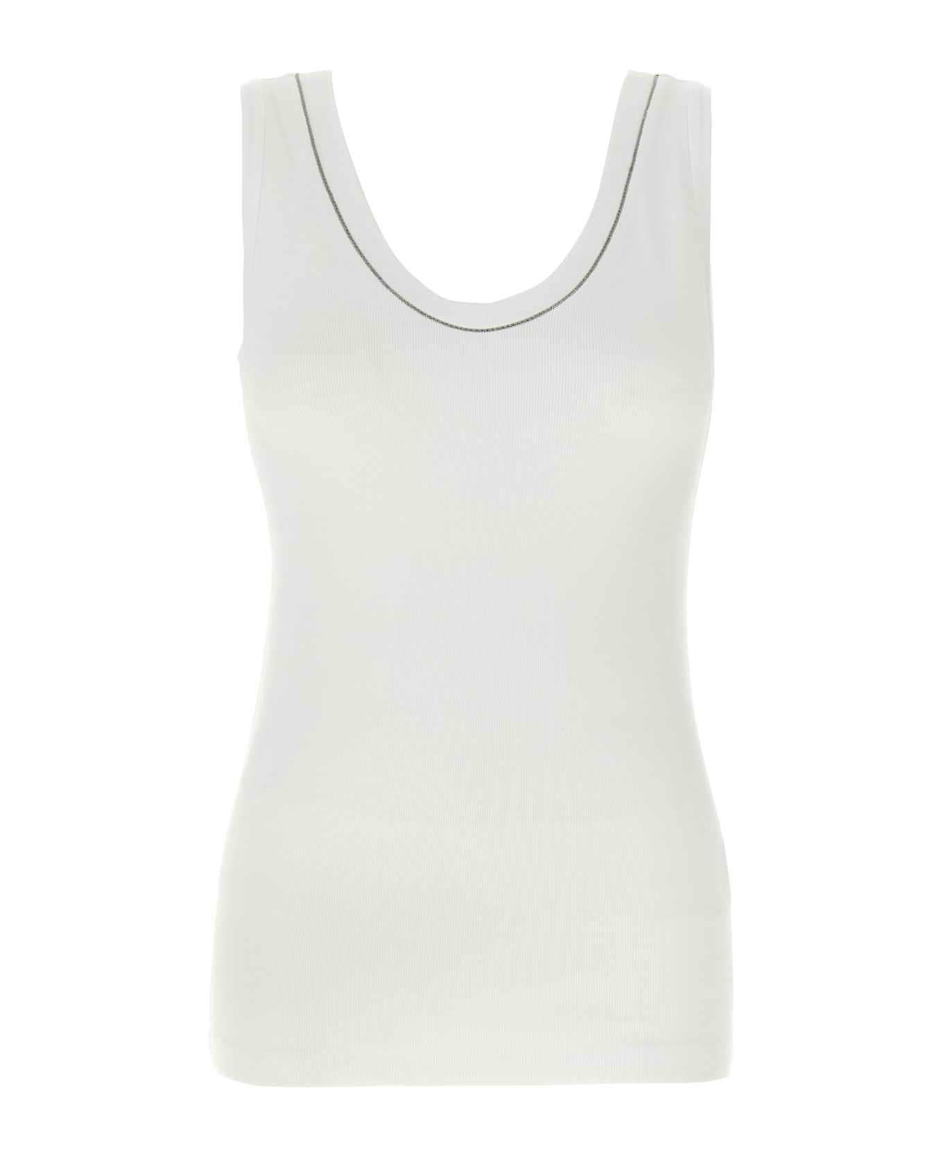 Ribbed stretch cotton top with round neckline at the front and back with Monile 'Shiny Collar' detail. Composition: