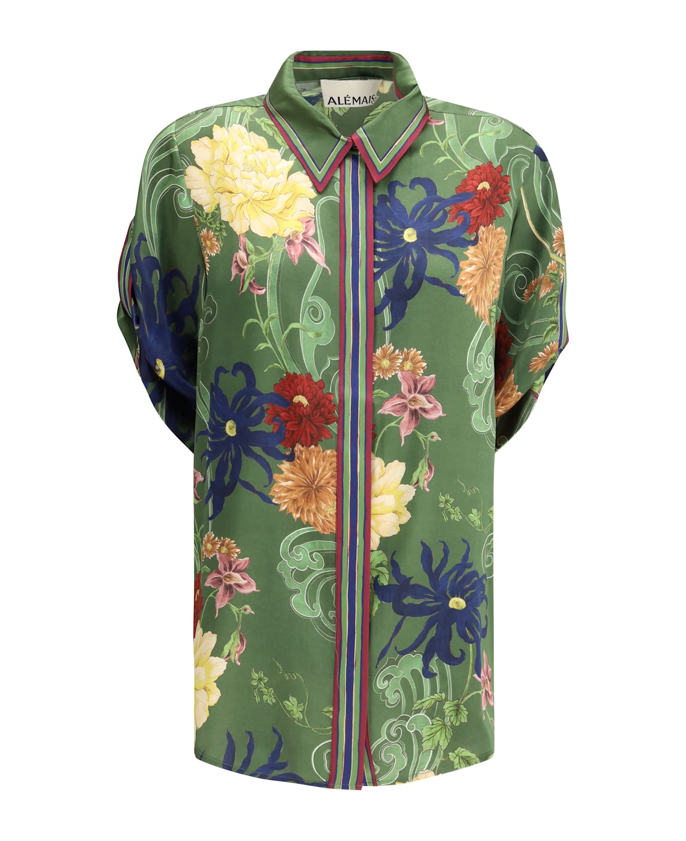 The avery silk shirt by alemais is an elegant and feminine piece featuring a refined floral pattern. made of lightweight silk, it features a classic collar, cuffed sleeves and a front closure with concealed buttons for a clean, sophisticated look. perfect to pair with both tailored pants and denim for versatile, casual elegance.