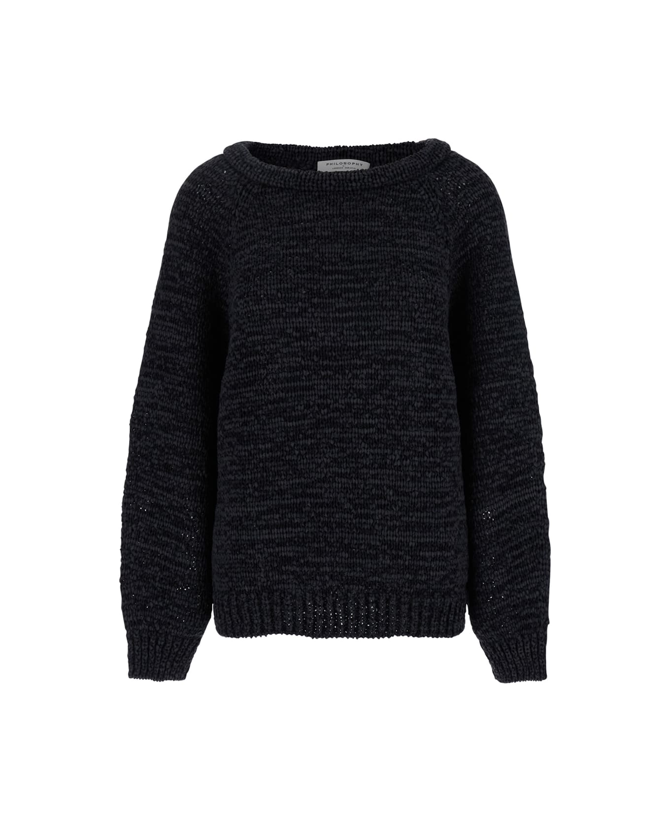 Sweater Black Crewneck Long sleeves Ribbed trims Straight hem Knit Tech fabric Relaxed fit