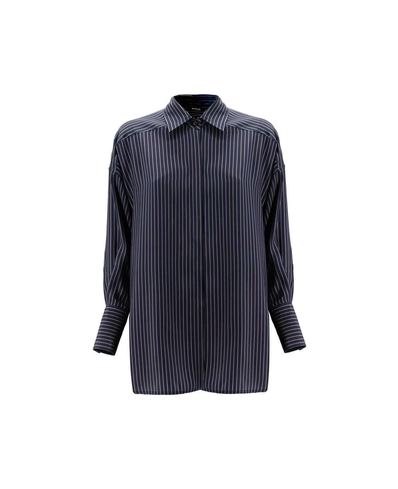 Silk blouse characterised by a masculine cut combined with a feminine volume, the asymmetrical bottom enhances its oversize soul. Composition: 100% SE