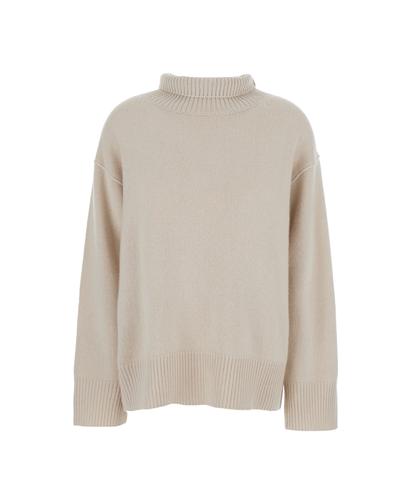 'boyfriend' Beige Turtleneck Sweater With Dropped Shoulders In Cashmere Woman