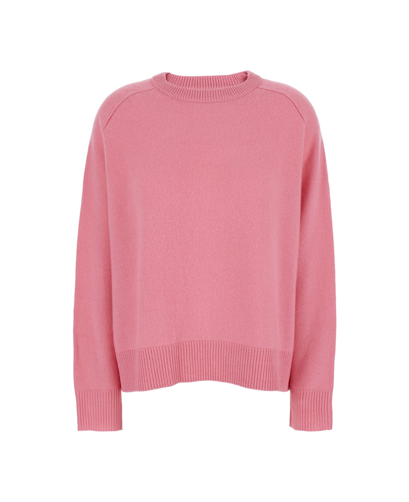 Sweater Pink Crewneck Dropped shoulders Long sleeves Ribbed trims Straight hem Cashmere Oversize fit