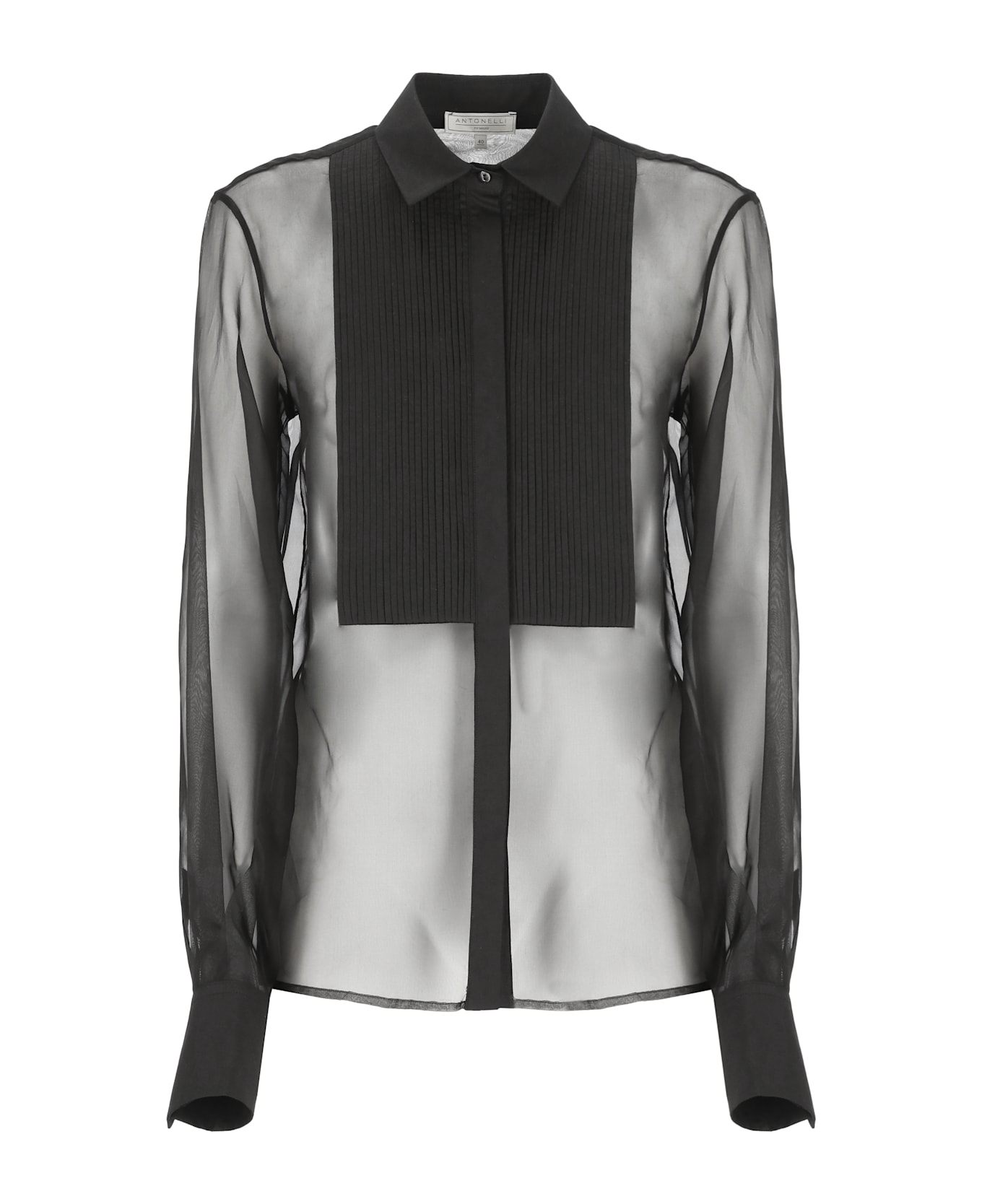 - Black Antonelli Firenze silk tulle shirt for woman - Collar - Long sleeves - Front buttons fastening