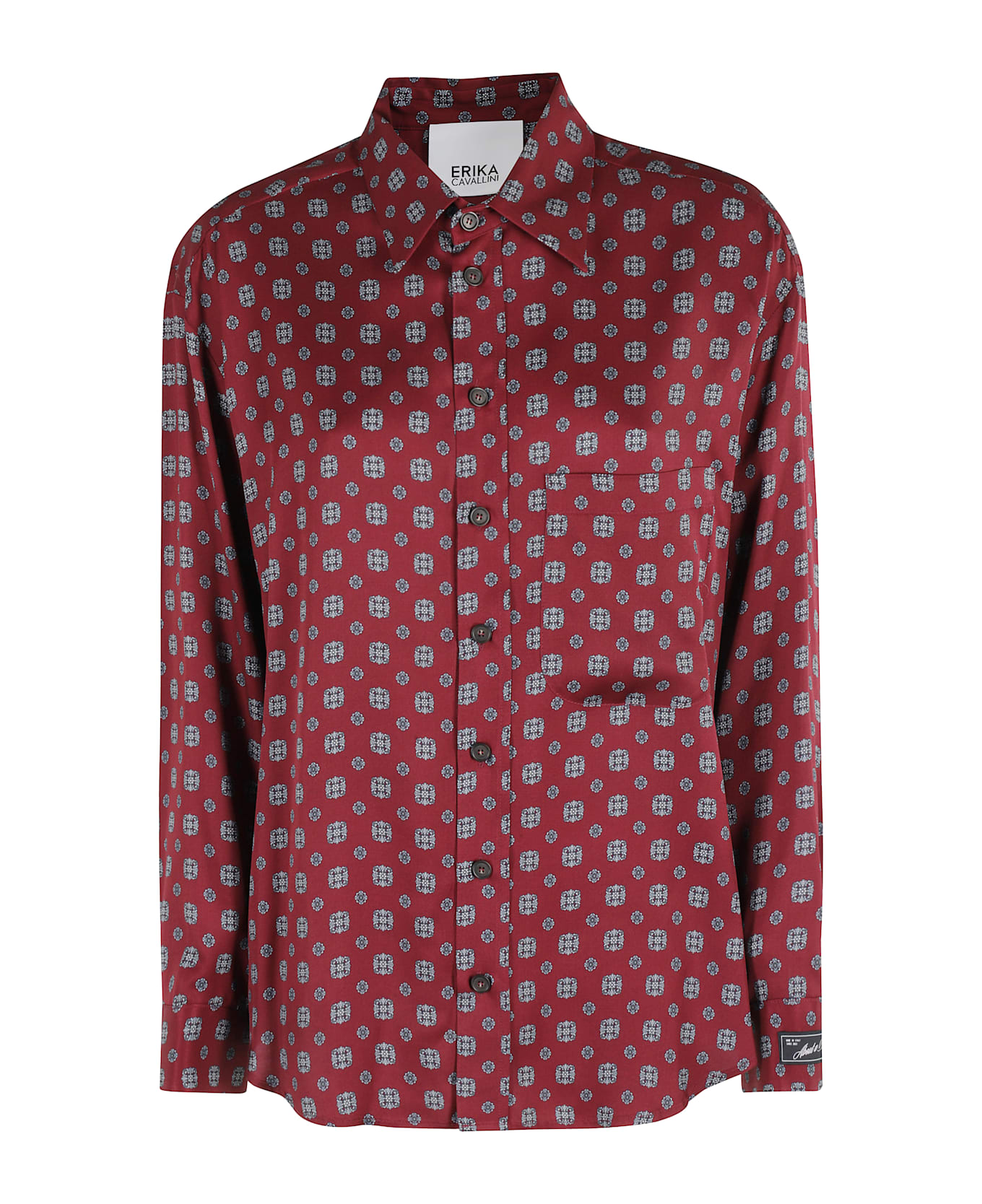 Shirt - Erika cavallini - Greta model - Bordeaux color - Tie print - Regular collar - Long sleeves - Top pocket - Buttons on cuffs - Applied logo band on cuff - Front button closure.
