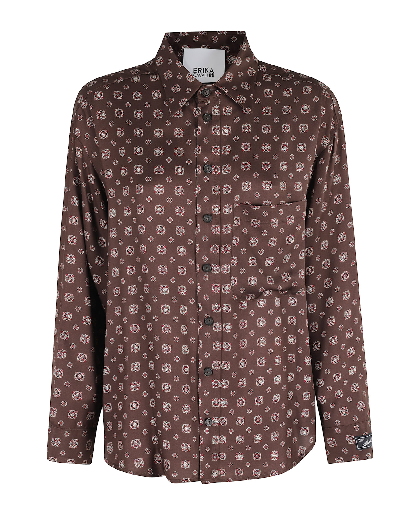 Shirt - Erika cavallini - Greta model - Brown color - Tie print - Regular collar - Long sleeves - Top pocket - Buttons on cuffs - Applied logo band on cuff - Front button closure.