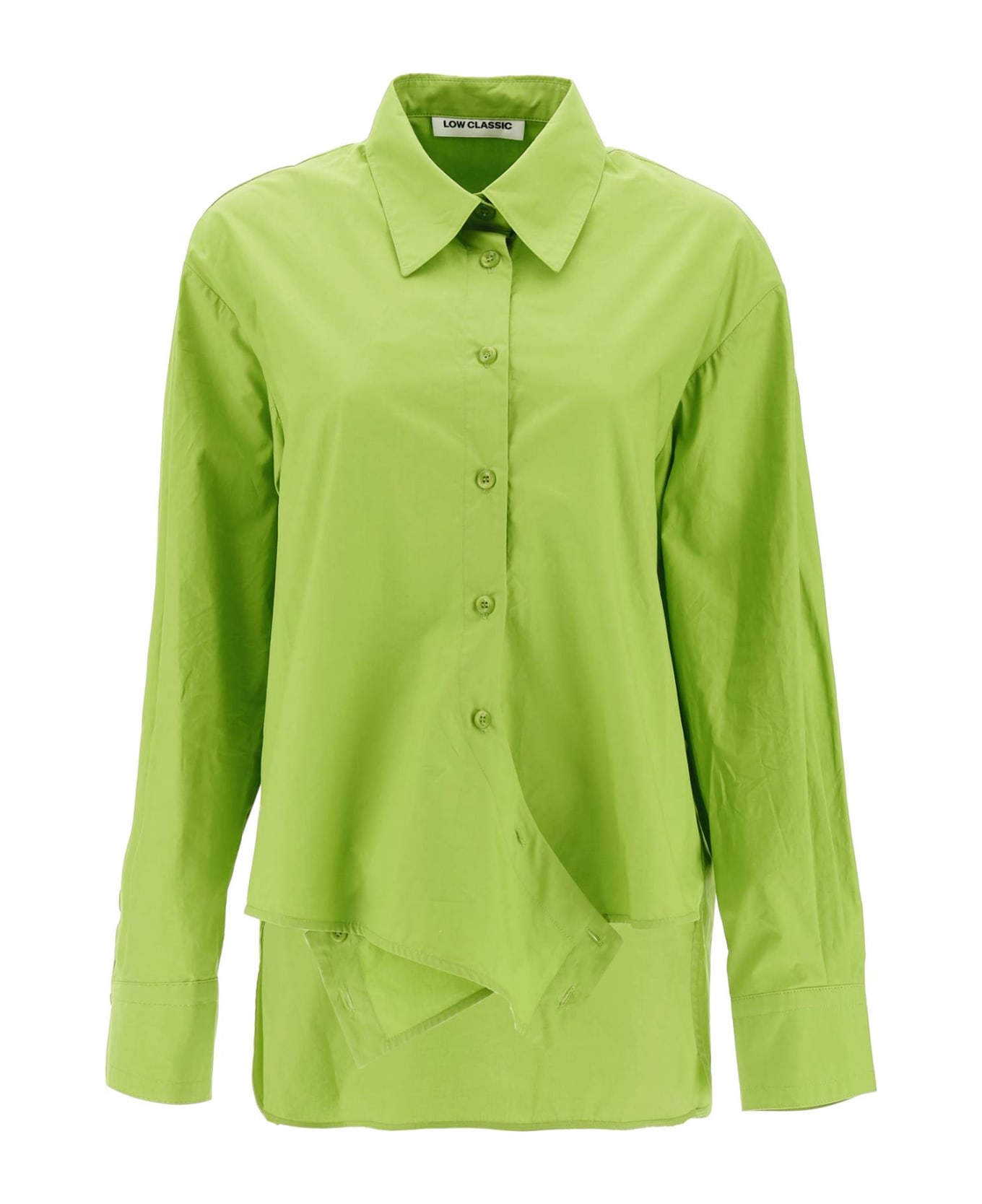 Low Classic shirt in pure cotton with asymmetrical buttoning. Pointed collar, two-button mitered cuffs, asymmetric hem, regular fit. Small button-through pocket on the back. The model is 177 cm tall and wears a size S.