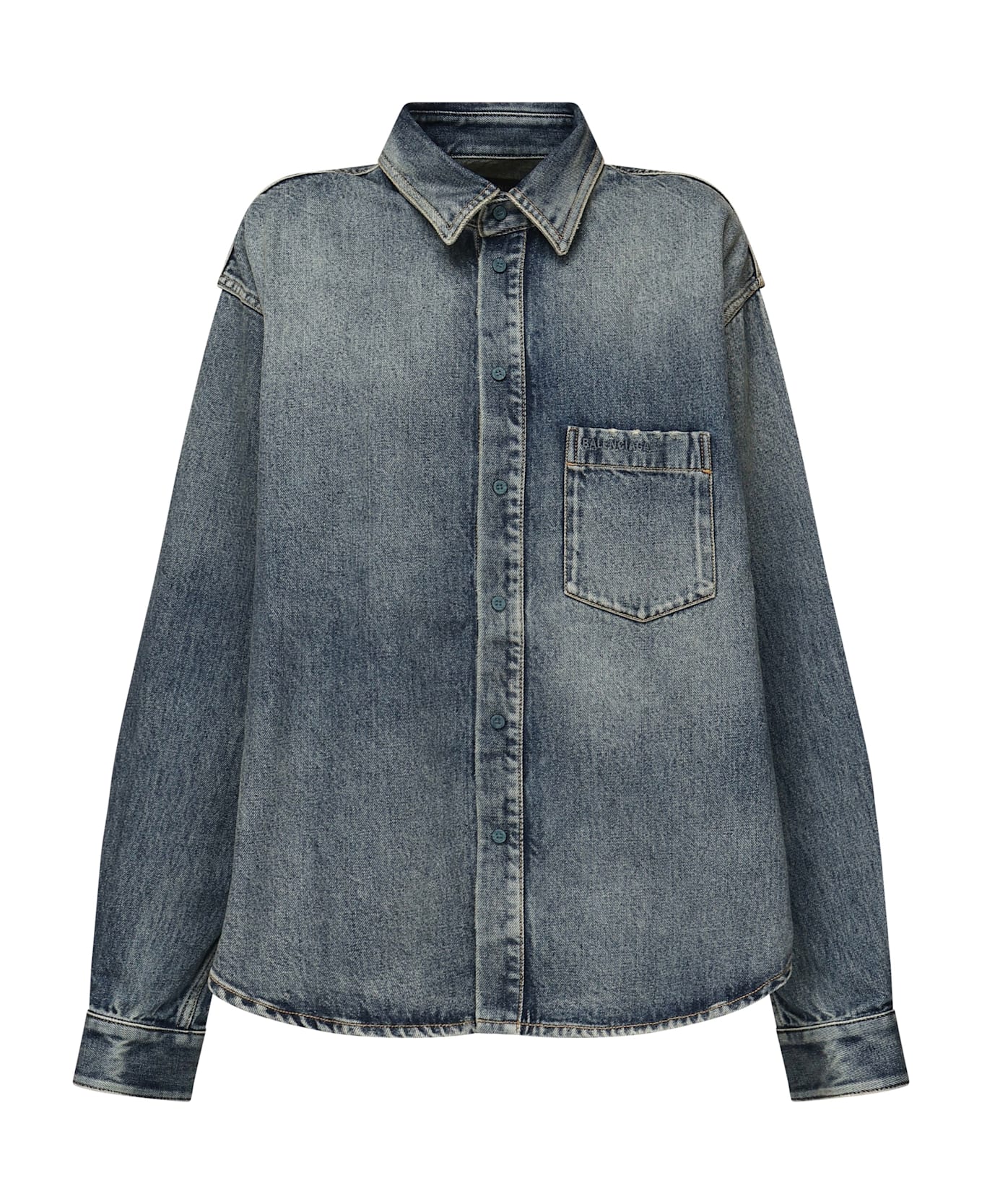 -Classic collar -Long sleeves -Dropped shoulders -Front button closure -Faded effect -Buttoned cuffs -Rounded hem -Oversized fit -The size shown in the photo is 34 IT -Color: Blue