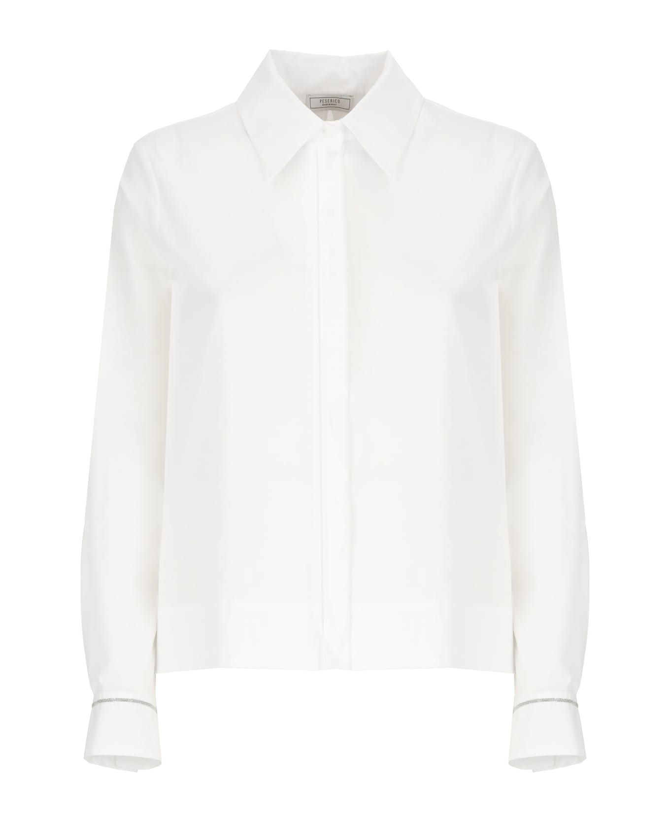 - White Peserico cotton shirt for woman - Collar - Sleeveless - Bright light point detail Composition: 97% Cotton, 3% Elastane
