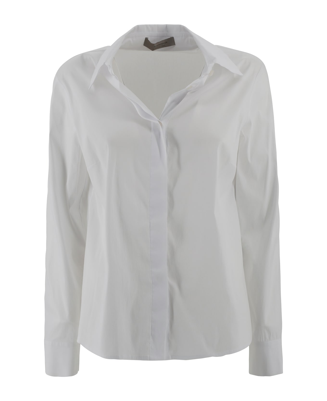 Elegant cotton shirt, a versatile and refined piece with a straight fit that represents a perfect balance between formal style and everyday comfort. Made with a classic collar and hidden front closure, featuring clean details like tone-on-tone buttons.