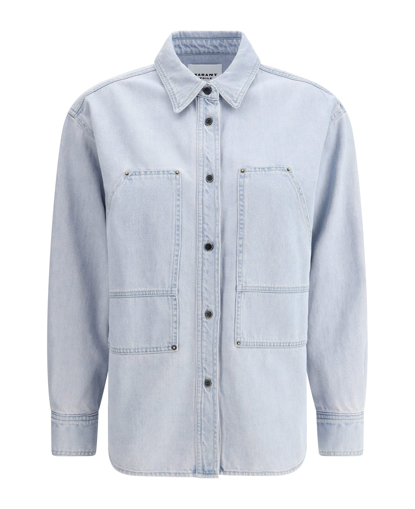Marant etoile's denim shirt jacket features a classic collar that gives it a refined look, while the front snap closure enhances its modern and practical design. the two patch pockets on the front add functionality and complete the casual and versatile look. this garment is ideal for an everyday outfit.