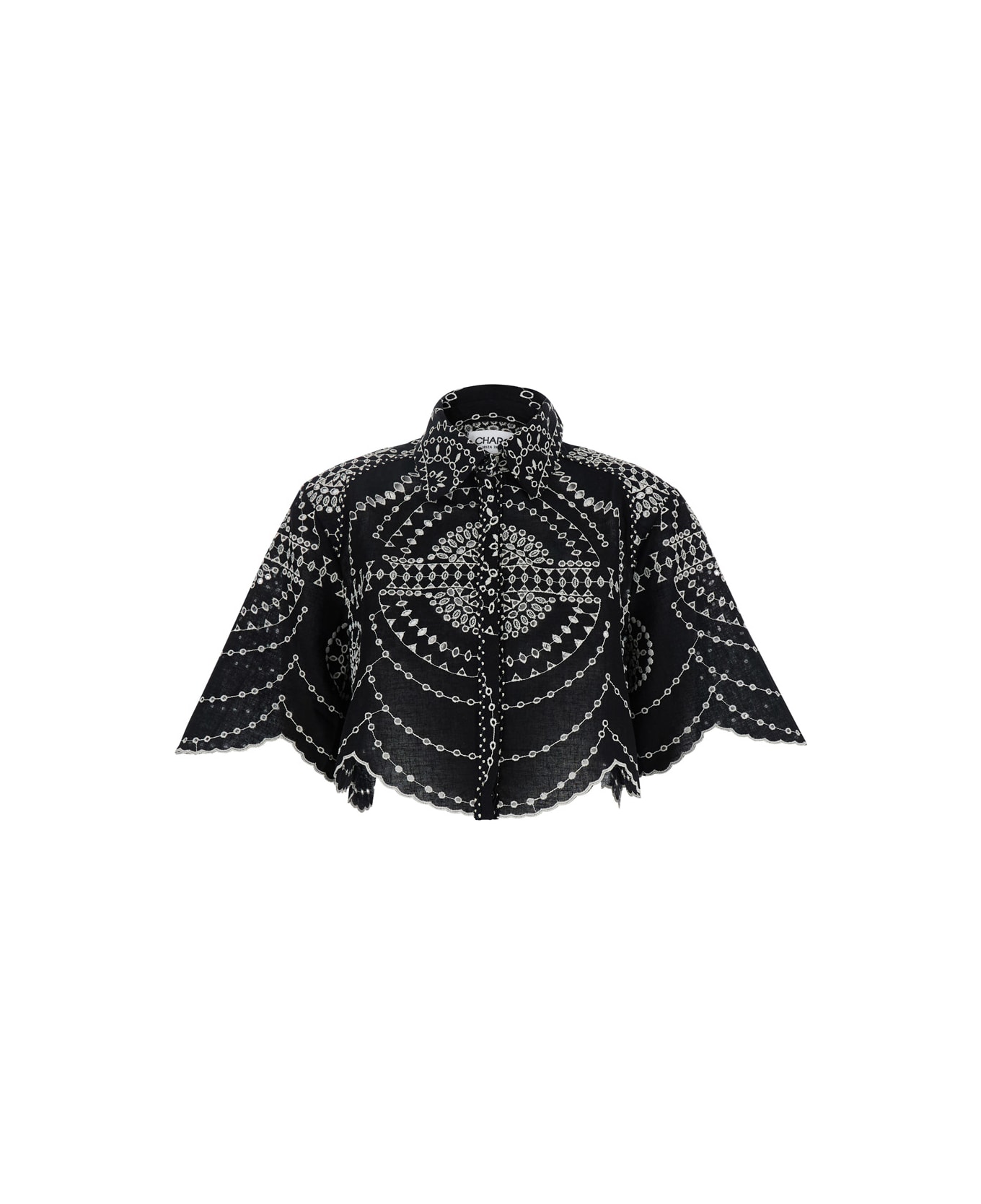 'emmie' Black Blouse With Cropped Design And All-over Contrasting Embroidered Details In Cotton And Linen Blend Woman