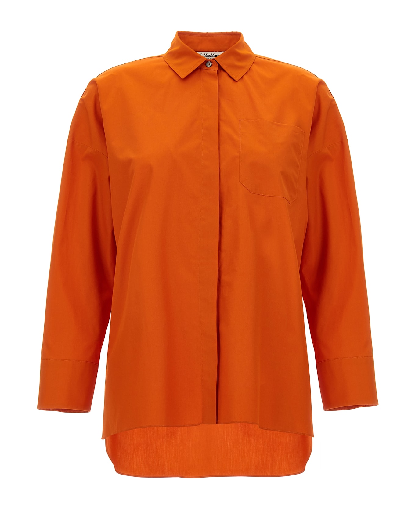 'Gerona' pure cotton poplin shirt, straight-line model, front button closure, breast pocket, long sleeves with cuffs and dropped shoulder, asymmetric hem, side slits. Composition: 100% cotton