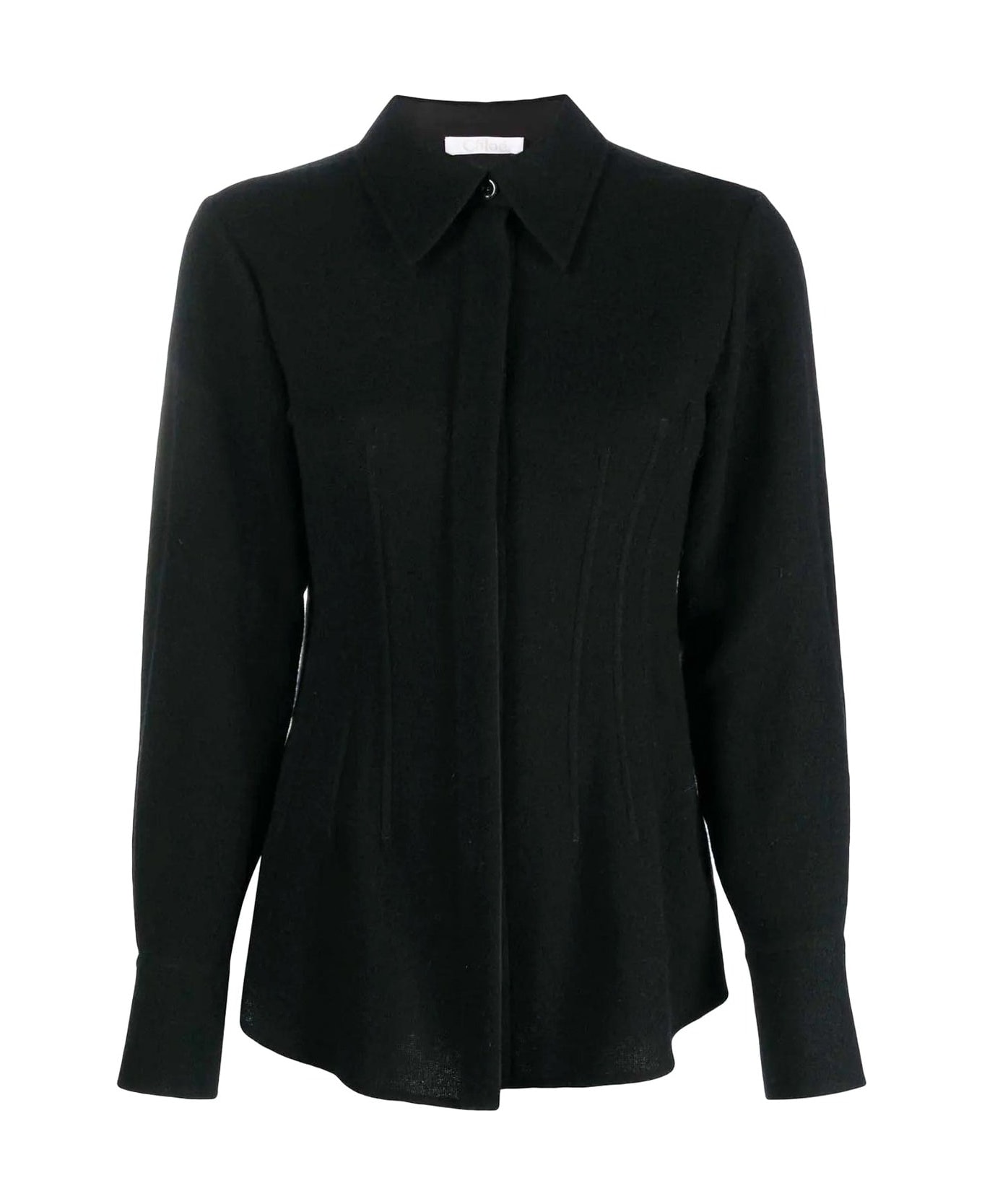 Composition: 50% wool 50% Cashmere corsetryinspired darts long sleeves slim fit for a feminine silhouette Made in Madagascar