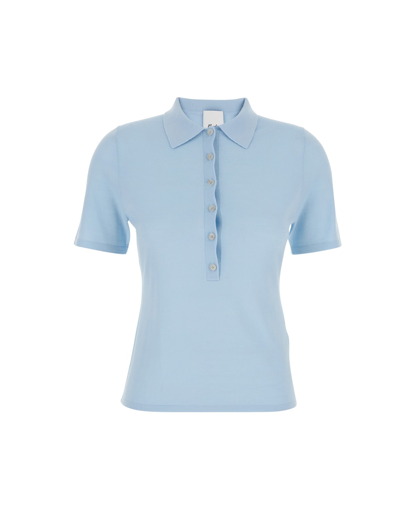 Light Blue Sweater With Polo Shirt Style Collar In Wool Woman