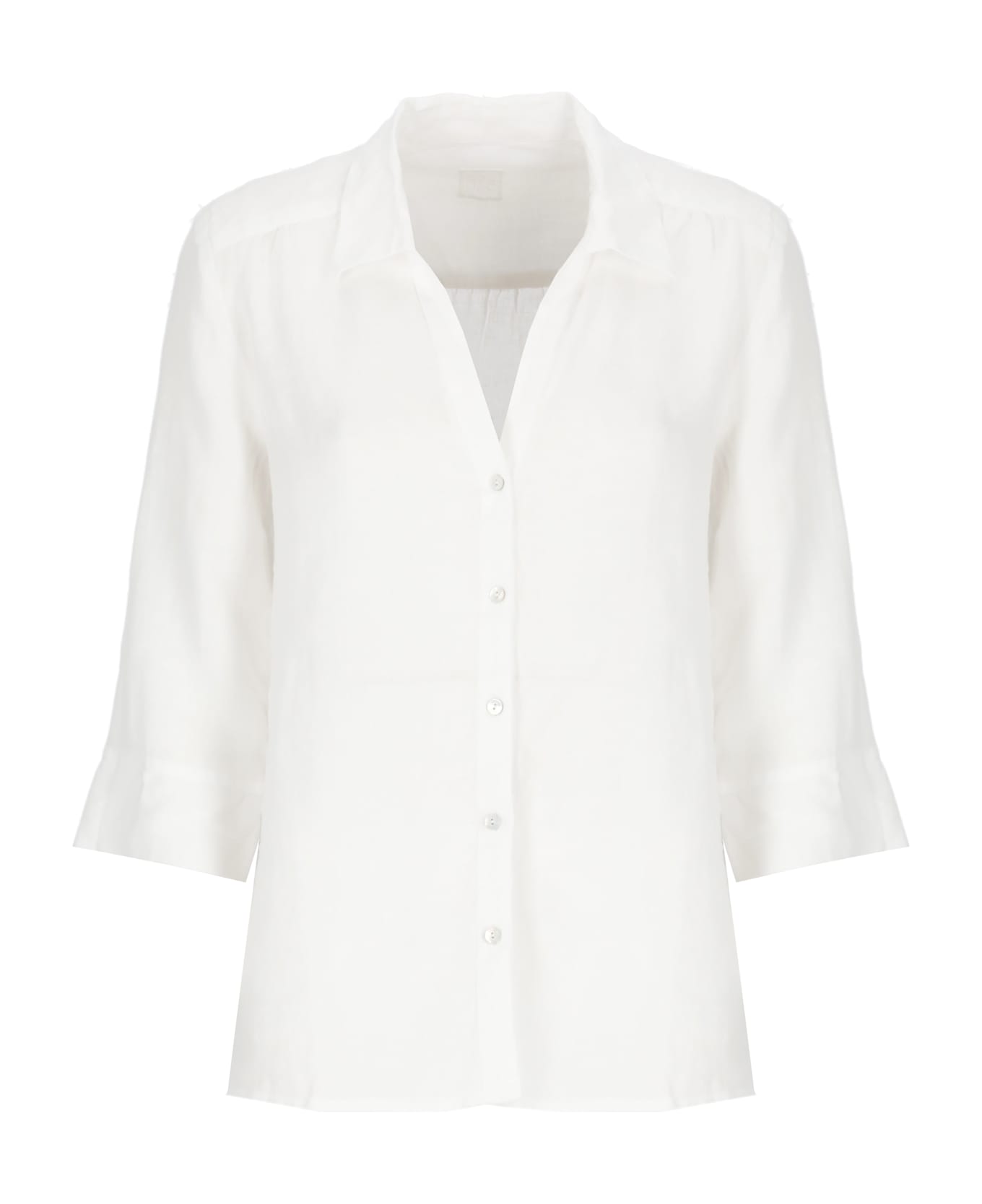 - White 120% Lino linen shirt for woman - V-neck - Long sleeves - Front buttons fastening
