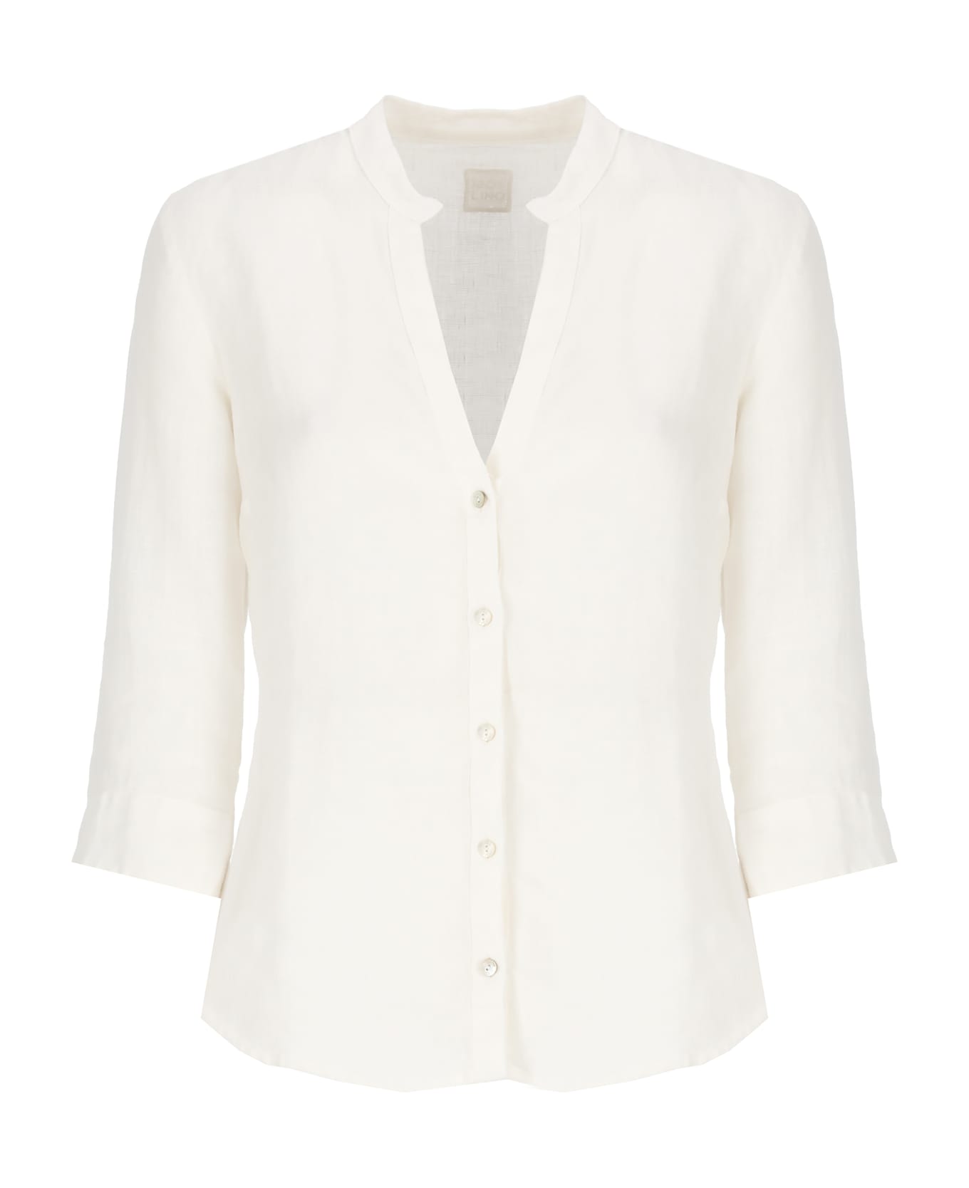 - Ivory 120% Lino linen shirt for woman - V-neck - Long sleeves