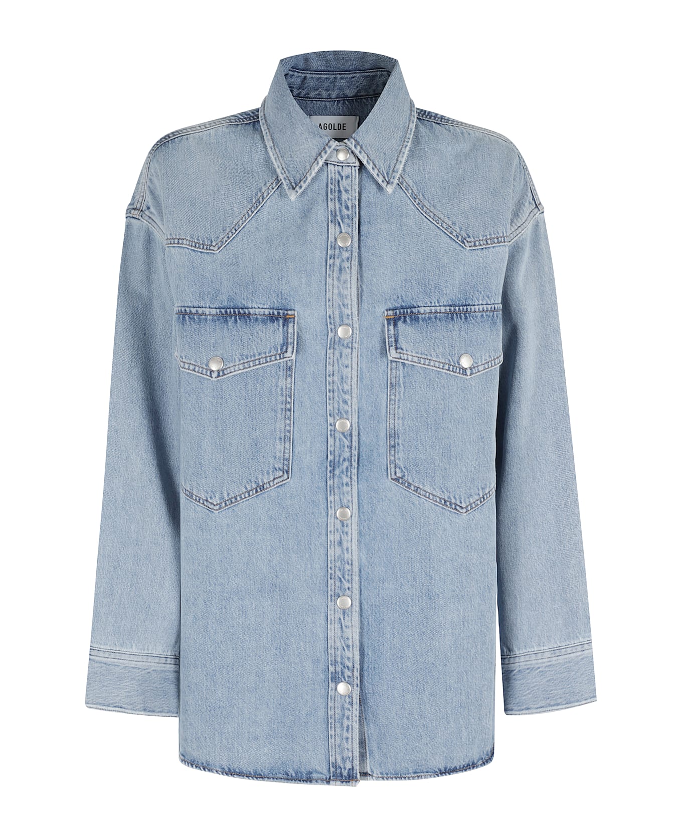 Lotta shirt - Agolde - Drift color - Regenerated cotton denim fabric - Pointed collar - Long sleeve with cuff and button - Flap and button pockets on front - Front button closure - Over fit