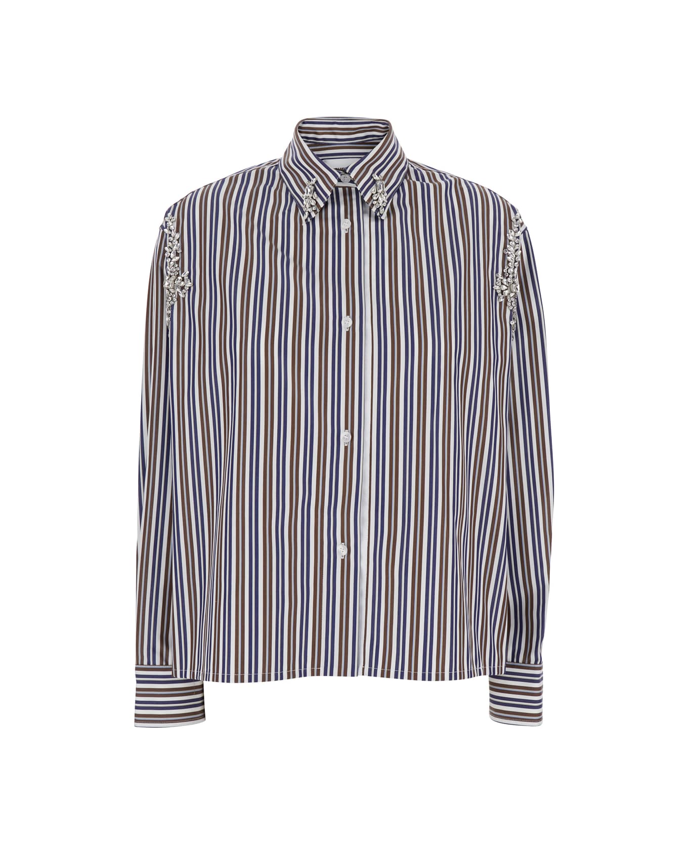 Multicolor Shirt With Front Crystal Embellishments And All-over Striped Motif In Cotton Woman