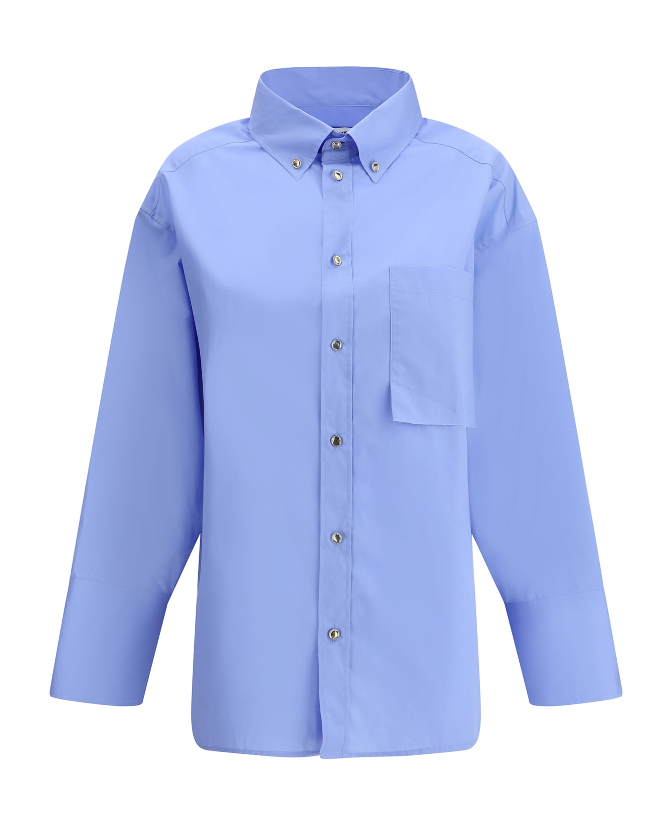 The nathalie cotton shirt by darkpark features a classic collar and a button front closure. the cuffs are adjustable with buttons, and there is a patch welt pocket on the front. the oversize fit gives the garment a relaxed, modern look.