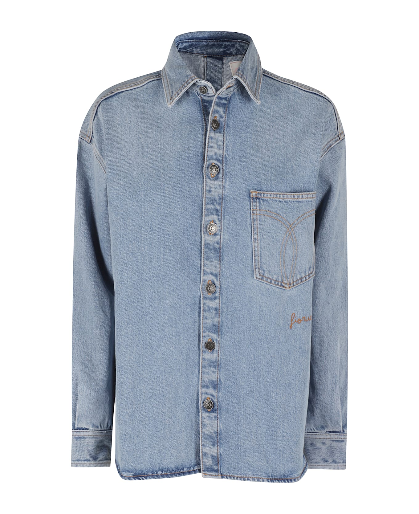 Open Back Shirt - Anine Bing - Blue color - Medium weight cotton fabric - Classic collar - Long sleeve with dropped shoulder - Front patch pocket - Contrasting embroidered logo - Front and back button closure - Over fit.
