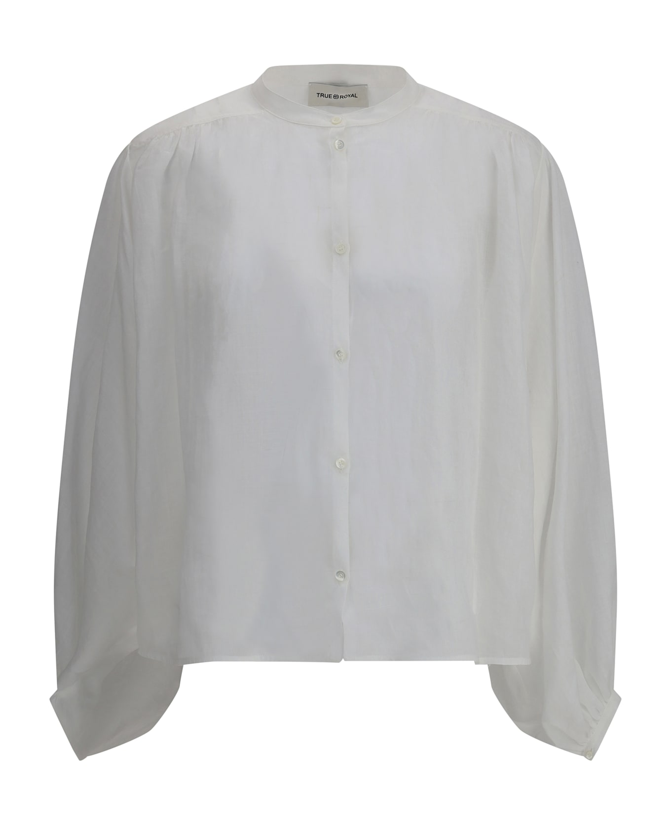 True royal's shirt features an elegant crew neck and a front button closure, enhancing its simplicity and elegance. balloon sleeves add volume and a touch of originality to the garment, while the oversized fit ensures comfort and a modern, relaxed look.