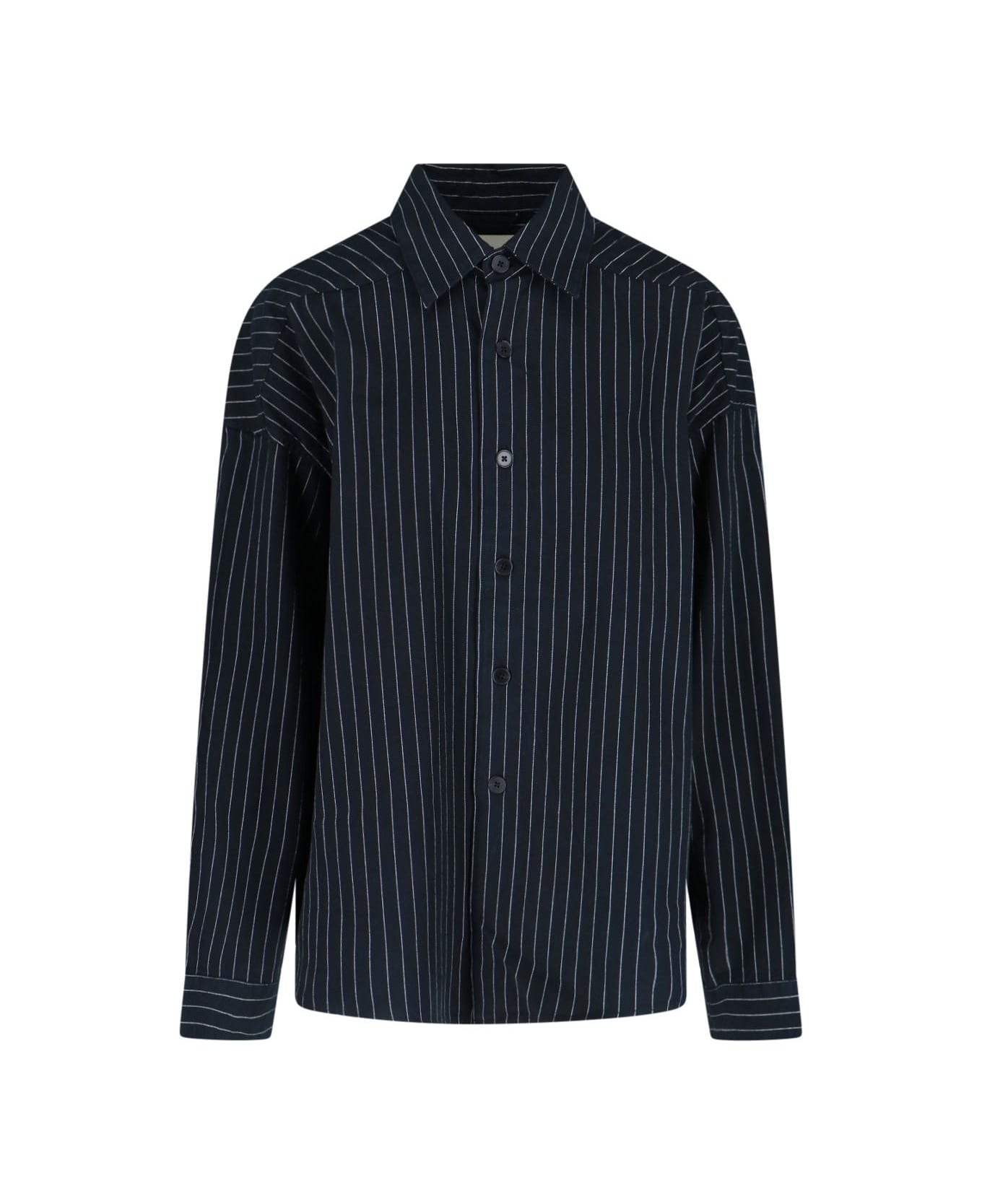 Entire Studios 'Miller' pinstriped shirt in black cotton with pinstripe pattern, classic collar, button closure, button cuffs, straight hem.