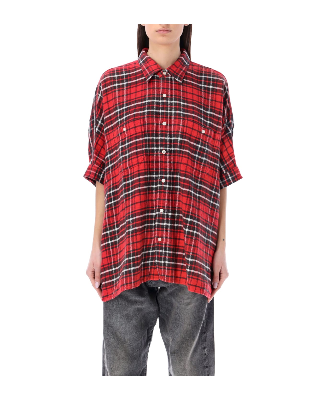 Japanese Plaid Oversized Boxy Shirt By R13. Featuring: Pointed Collar Buttons Closure Chest Patch Buttoned Pockets Short Sleeves Oversized Fit The Model Is 1,72m Tall And She's Wearing Size S