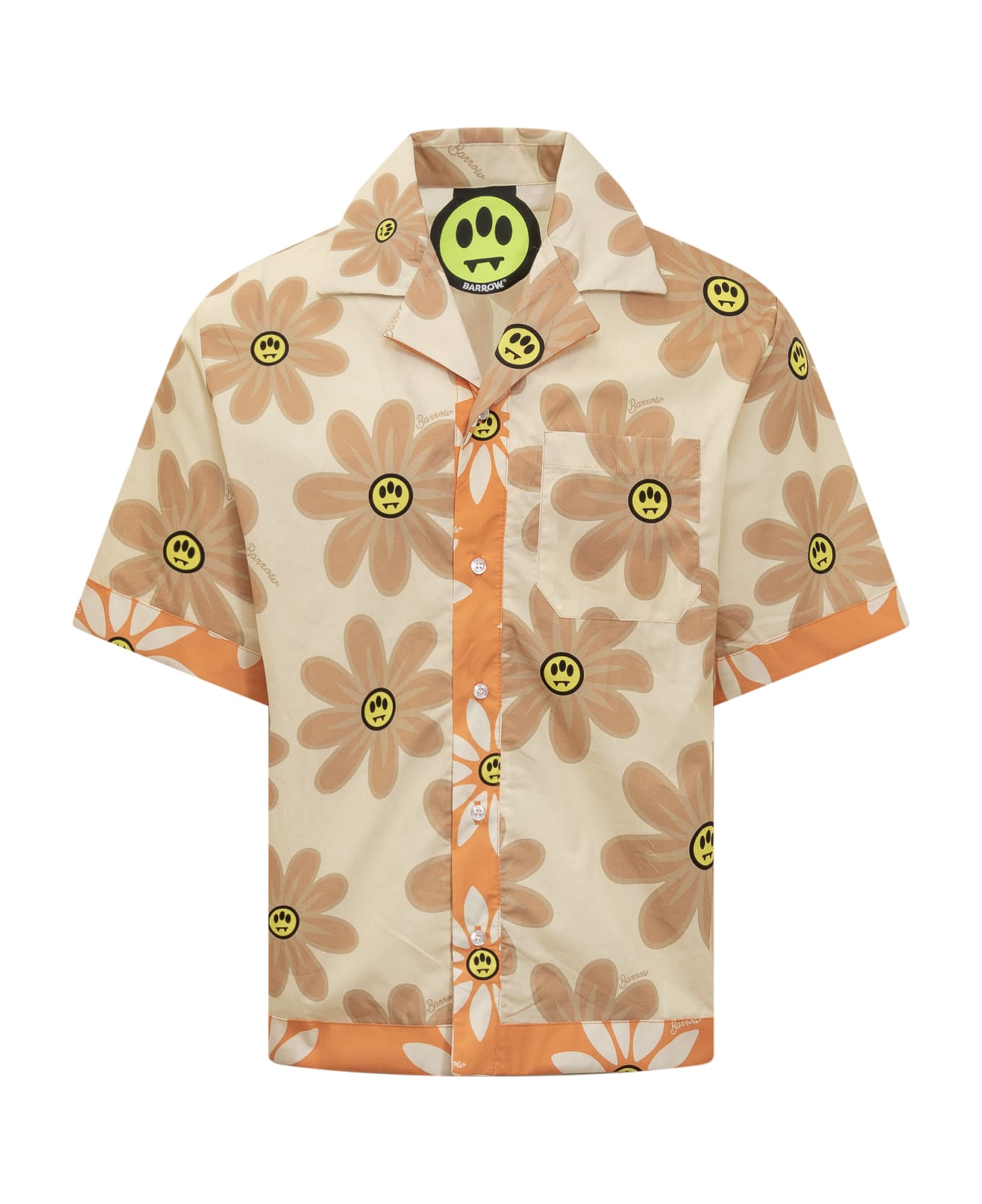 Bowling shirt in poplin. Button closure. Side pocket. Flowers print with logo detail.