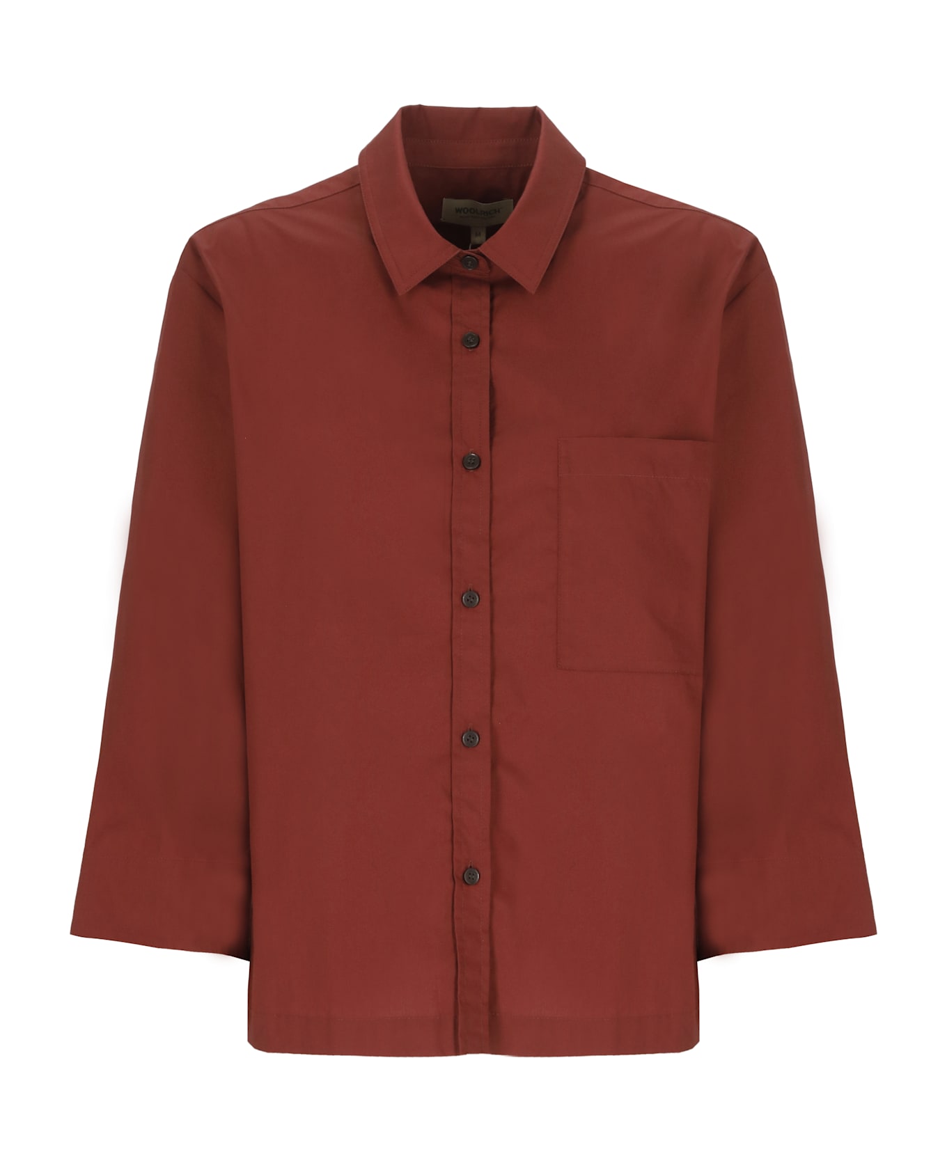 - Brown Woolrich cotton shirt for man - Collar - Long sleeves with buttons - Front buttons fastening - One chest pocket