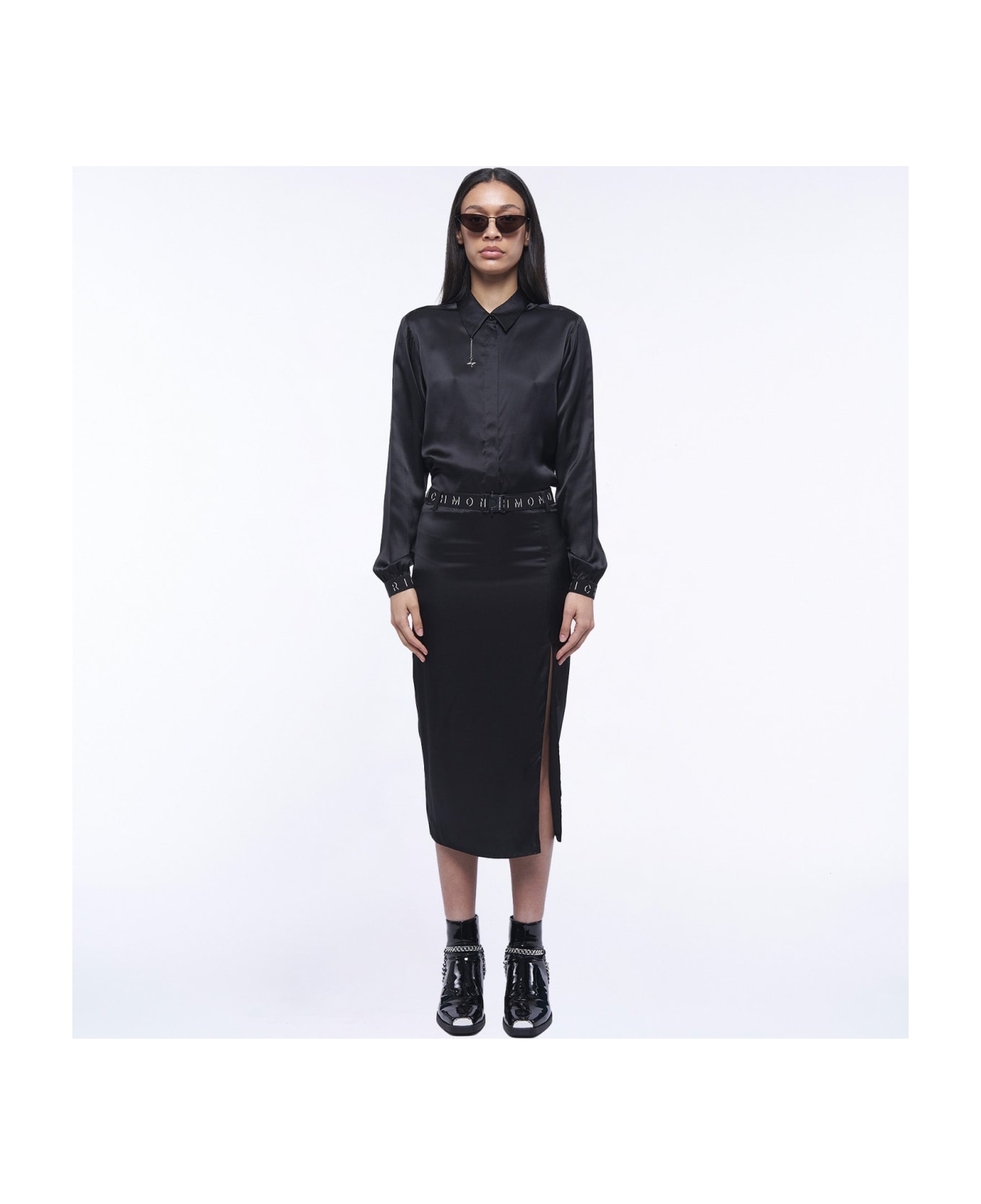 Satin effect shirt with long puff sleeves and contrasting logo cuffs.