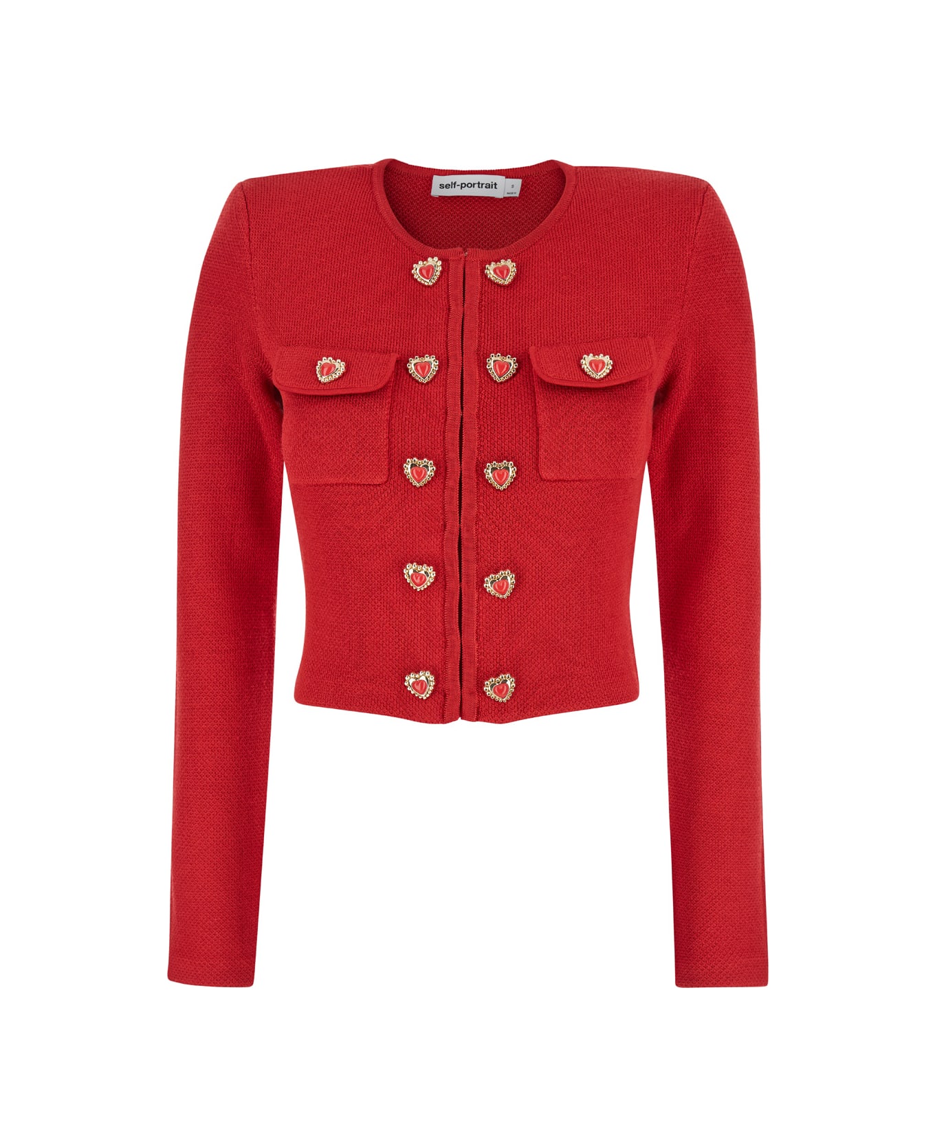 Red Cardigan With Round Neck And Heart Shaped Buttons In Cotton Blend Woman