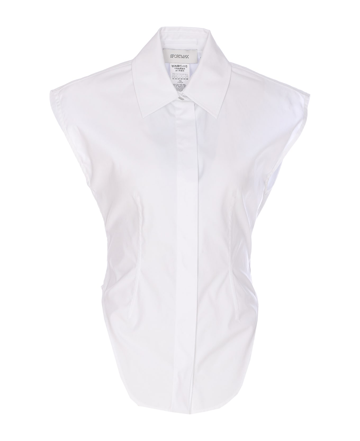Sportmax white Sabato shirt, buttons closure, regular collar, sleveeless, cut out detail on the back