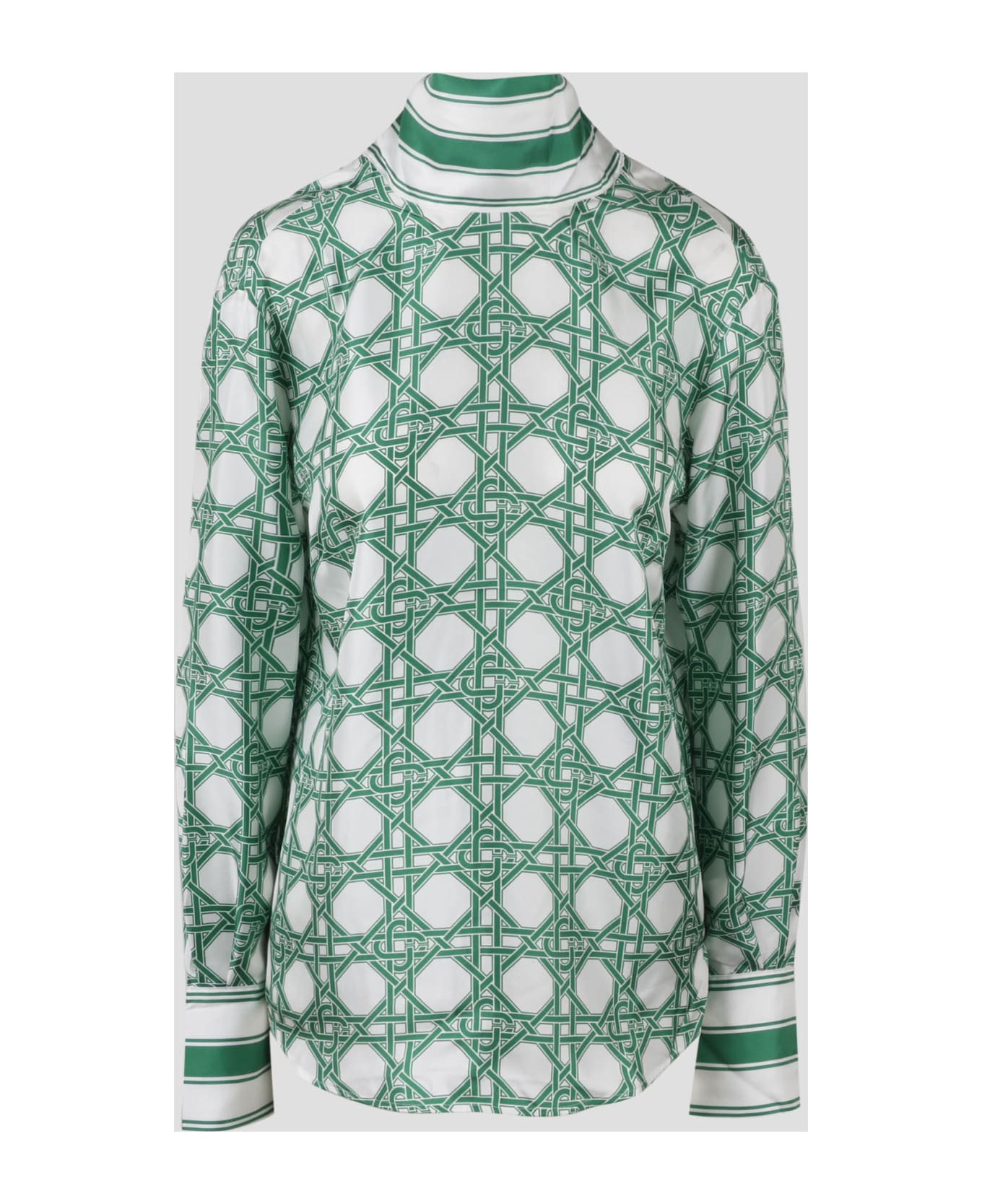 Casablanca blouse, in D`Osier Monogramme silk twill printed throughout. - FW22