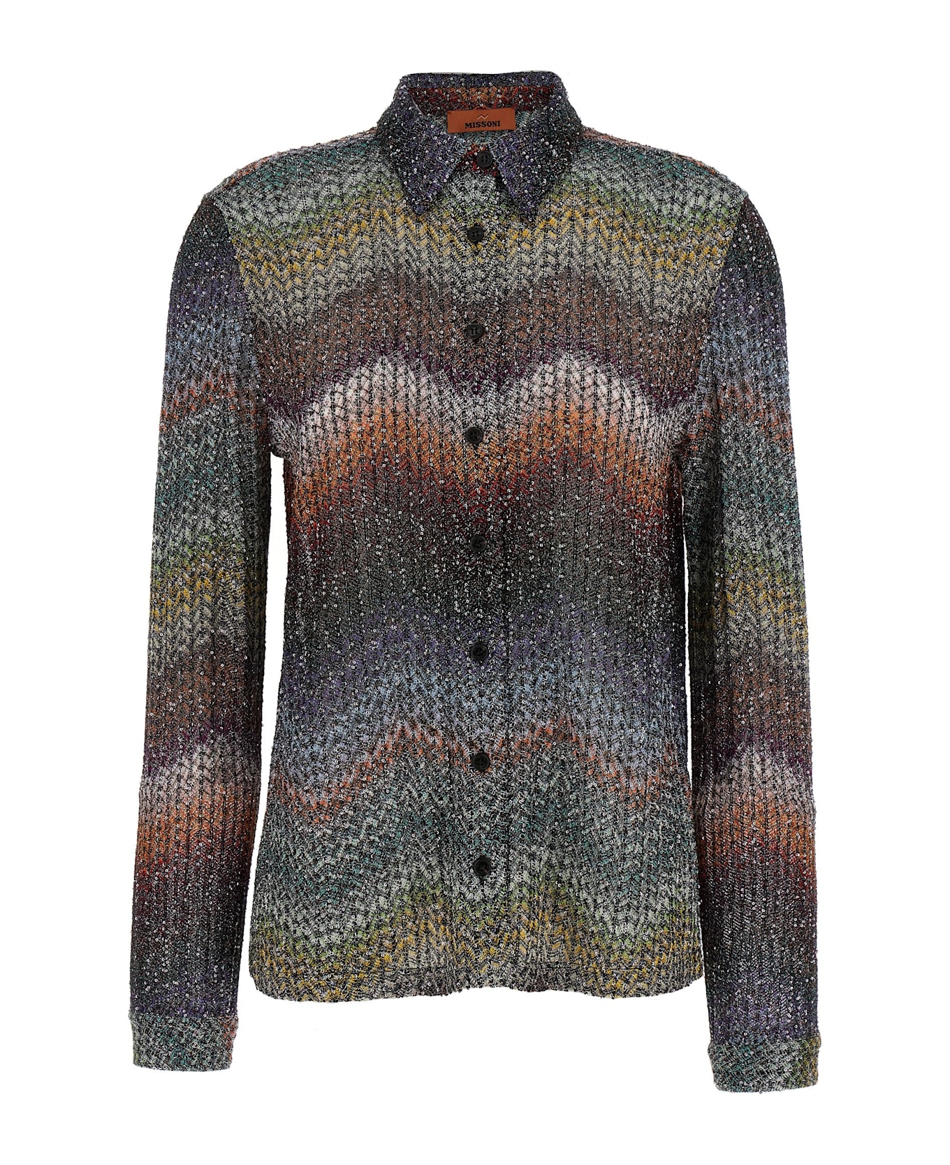 Caperdoni viscose lamé shirt with all-over sequins made with zigzag pattern, front button closure, long cuffed sleeves.