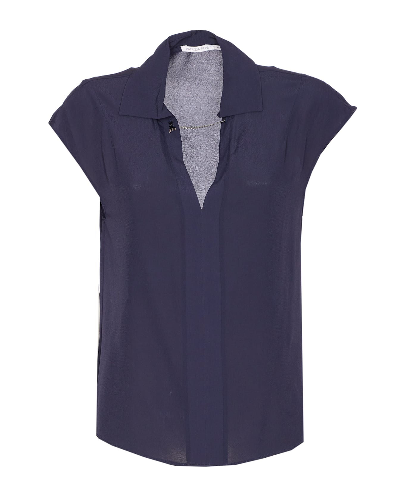 Patrizia Pepe blue navy shirt, V neck, sleeveless, collar, frontal logo