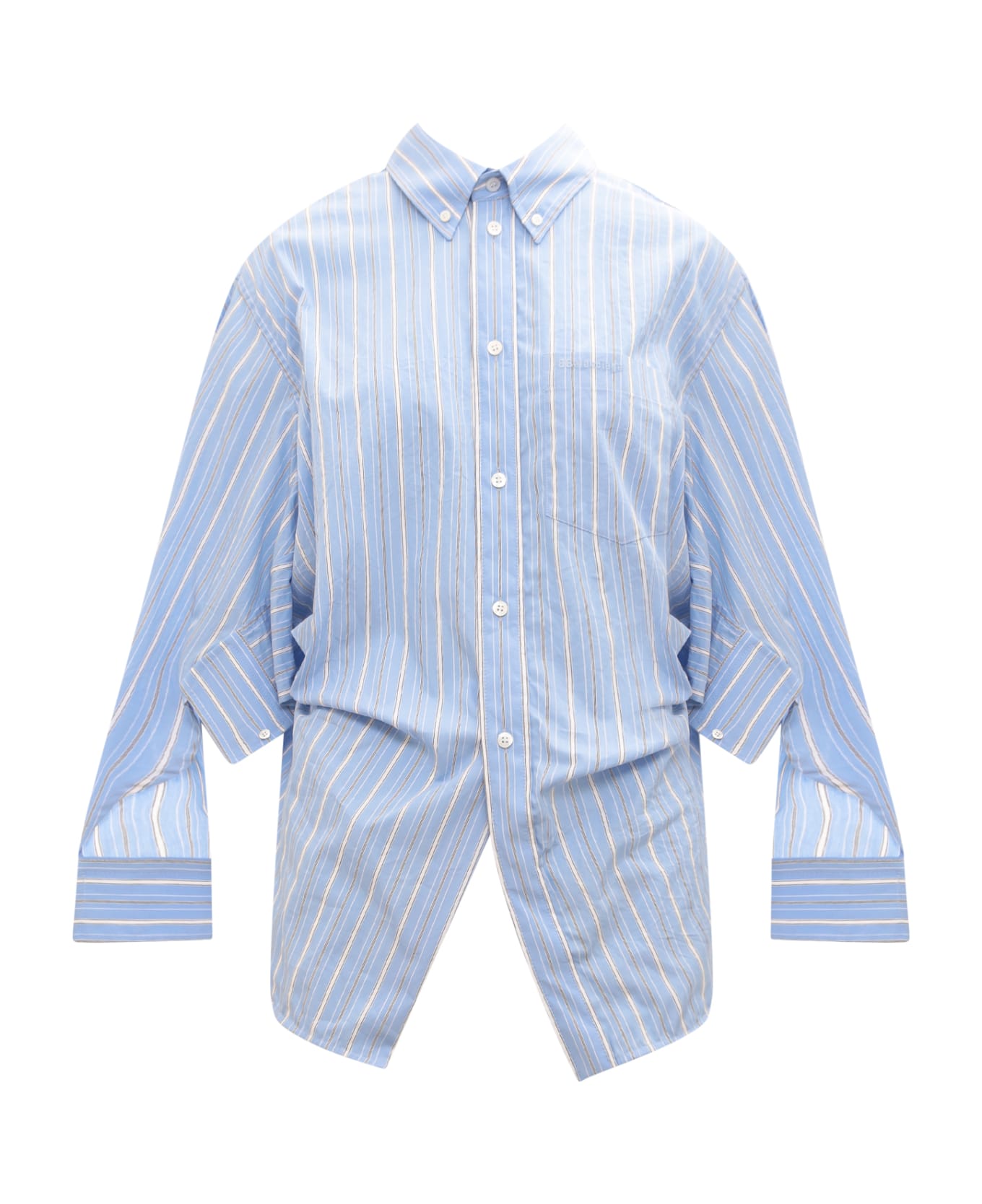 - Button-down Collar - Asymmetric Long Sleeves - Applied Pocket With Logo Embroidery - Side Drapery - 100% Cotton