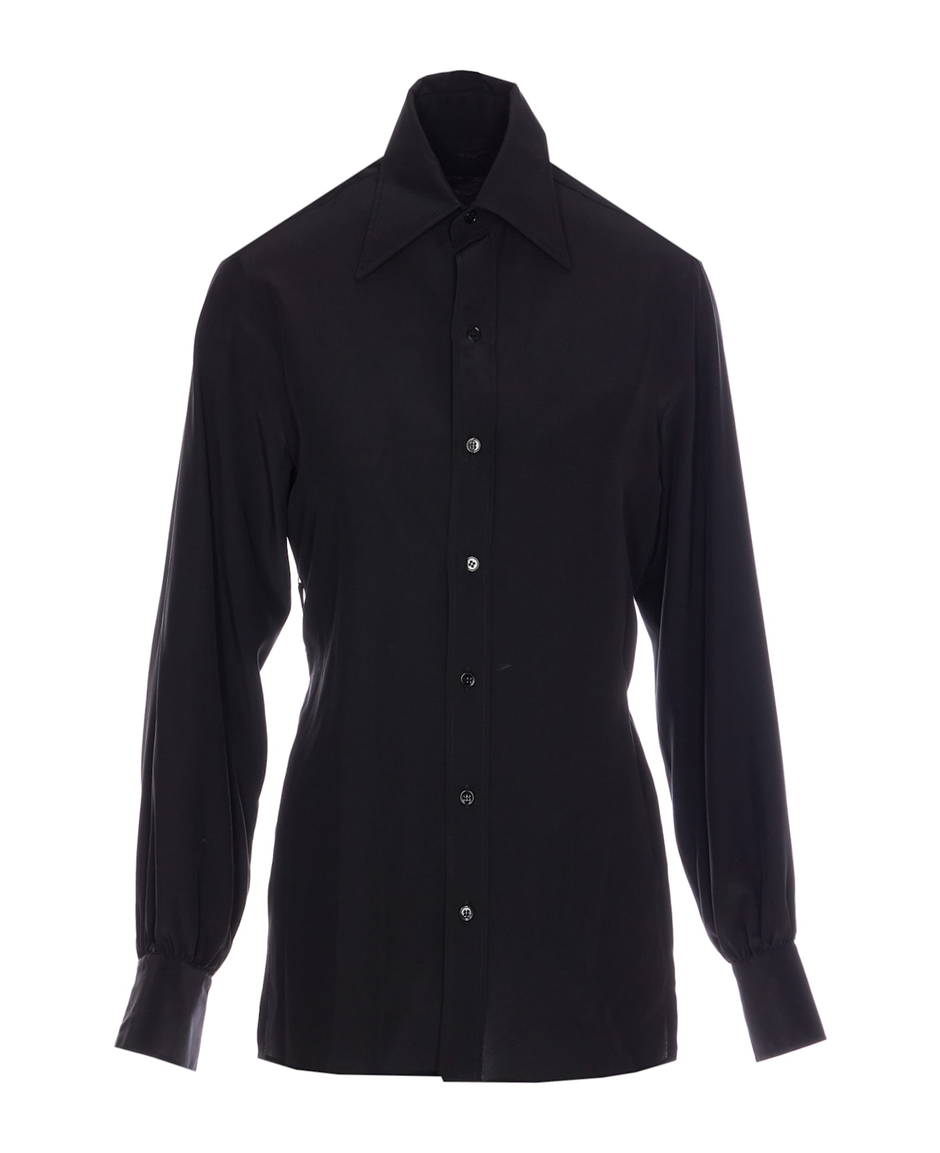 MM6 Maison Margiela black shirt with frontal buttons closure, belt on waist, regular collar, button on cuffs Composition: 100% Silk