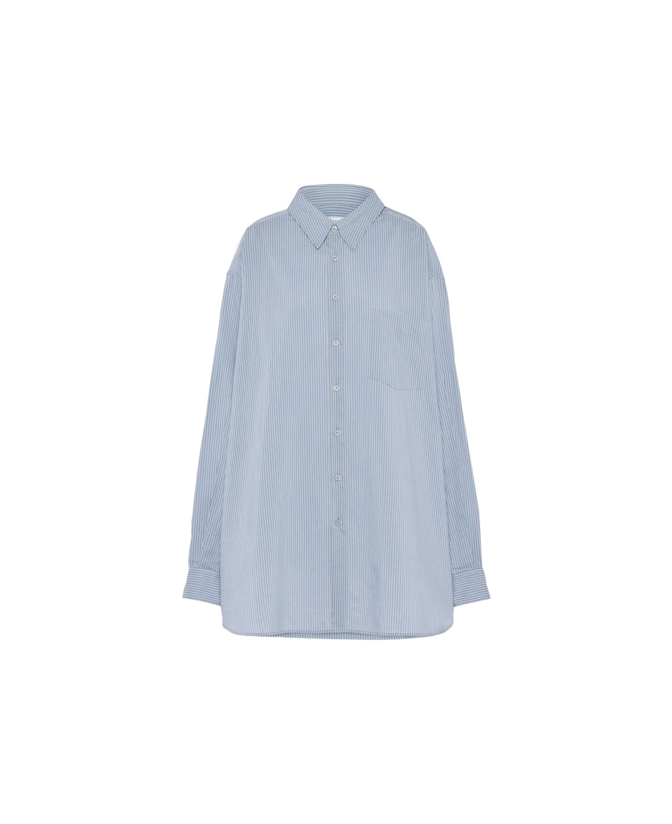 light blue striped chest pocket button fastening long sleeves classic collar
