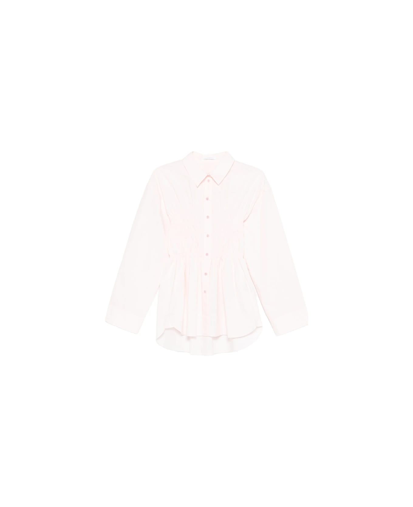 light pink shirred detail peplum hem long sleeves button fastening pointed collar