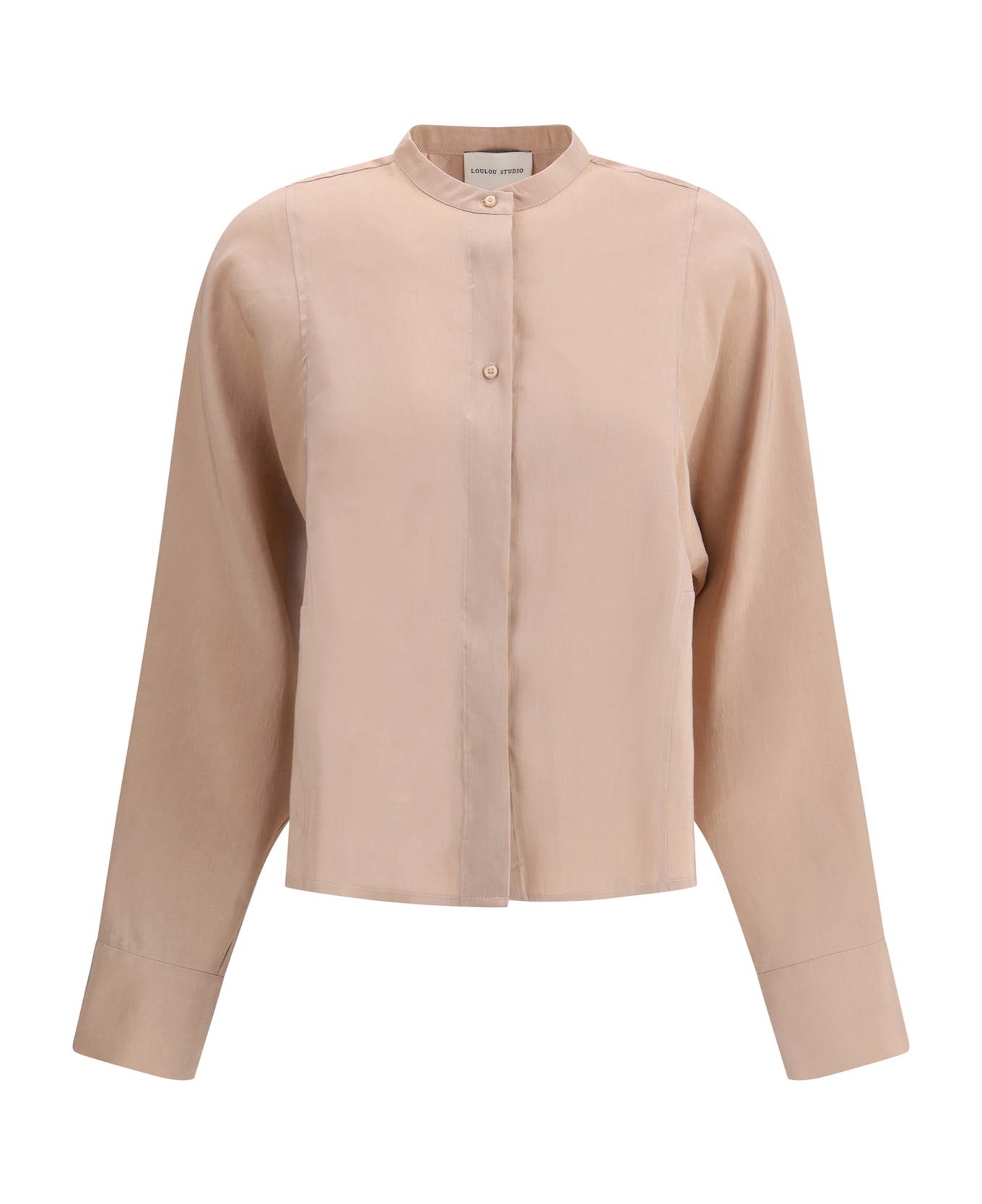 The siara shirt by loulou de saison is a piece that combines elegance and simplicity, with a refined yet modern design. without a collar, it offers a minimalist look that highlights its clean silhouette. the front button closure maintains a classic look, while the wide sleeves add a touch of fluidity and comfort to the piece. the pleat on the back gives movement and a stylish detail that enriches the shirt. a versatile piece, ideal for pairing with both casual and more formal looks, which expresses the sophisticated simplicity of the brand.