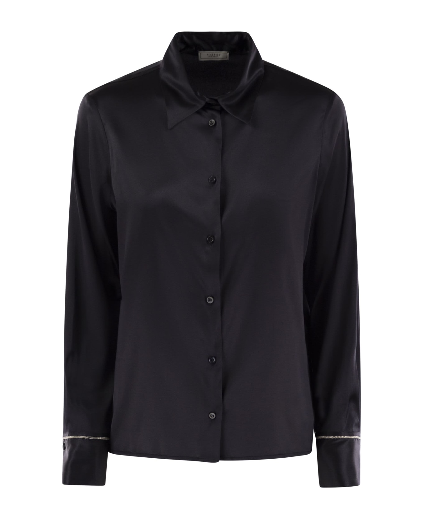 The silk crepe button-fastening shirt is an ode to contemporary elegance. The long sleeves add a touch of femininity, while the spotlight detail on the cuffs lends sophisticated elegance. The regular fit ensures comfort and style, making this shirt a versatile garment for any occasion. - Button closure - Long sleeves - Stitch-light detail - Regular fit DESIGNER ID: A0656002372 261