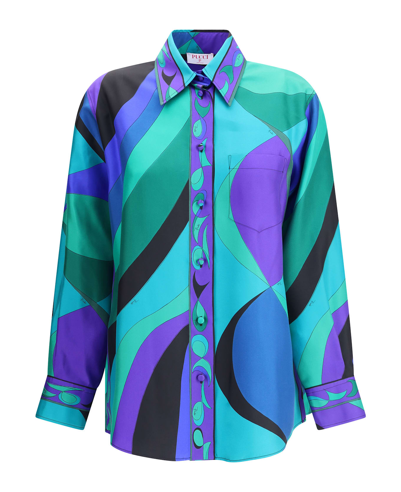 Pucci's silk shirt is an elegant and vibrant garment, enriched by the iconic pesci print that recalls the maison's distinctive aesthetic. featuring a classic collar and front button closure, it combines the lightness of silk with a refined and striking design. to offer you a unique garment, pucci uses an all-over print that makes the item unrepeatable. therefore, the placement of the print may vary from the one in the photo.